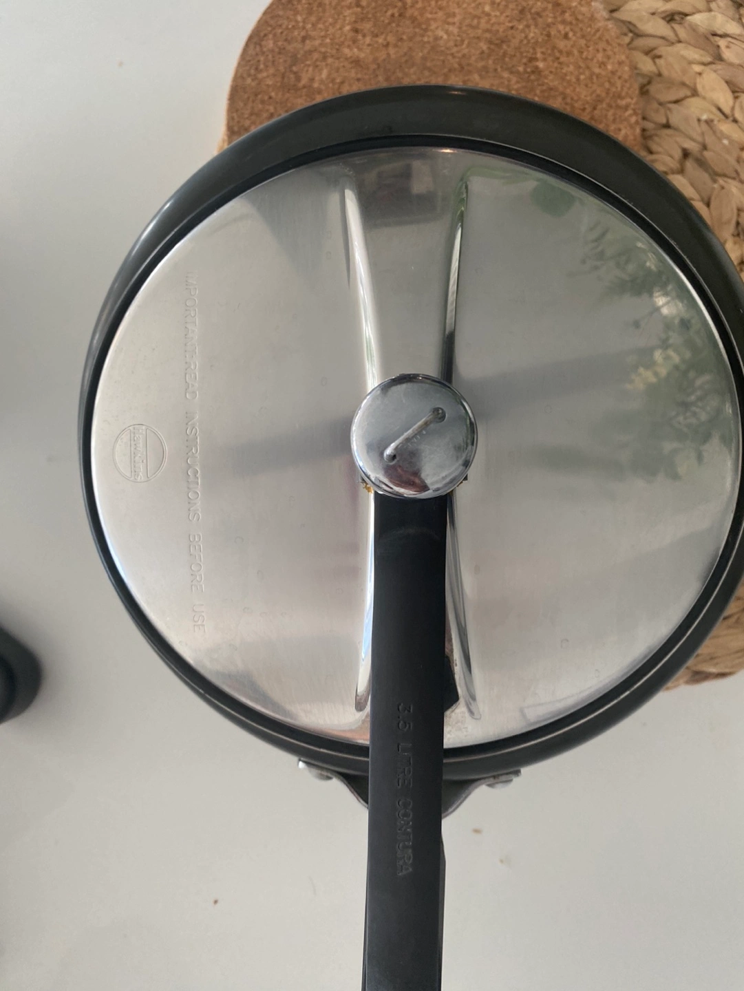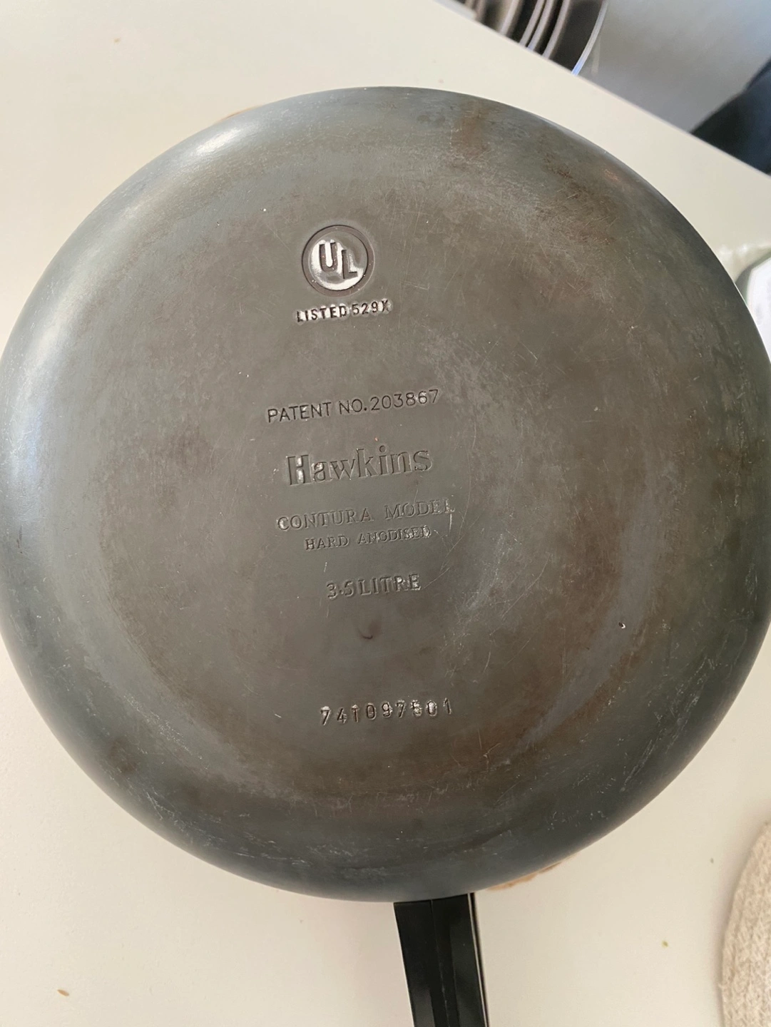 Used Hawkins pressure cooker. Hard anodized. Model Contura. 3.5 litre.