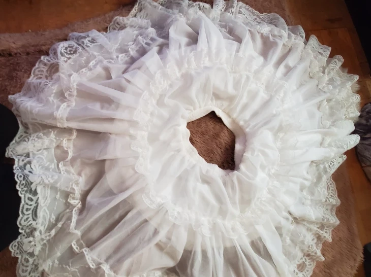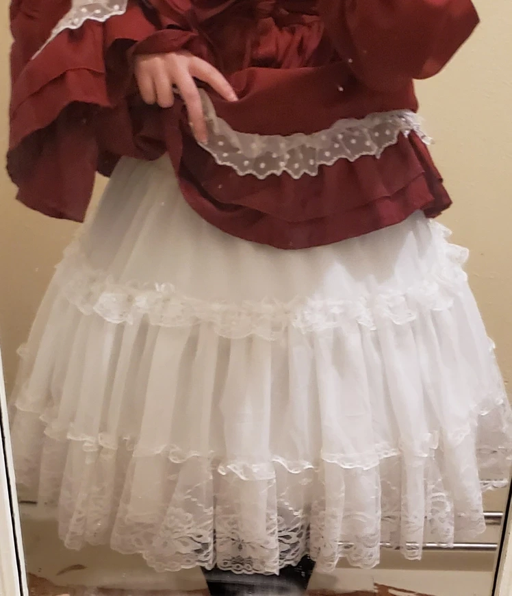 Looks brand new, for 90 take the under volume/ petticoat for the dress! As in the pictures the petticoat is under the dress for extra volume like historian times if I'm correct, I loved this dress but never used it and Im clearing out my closet,