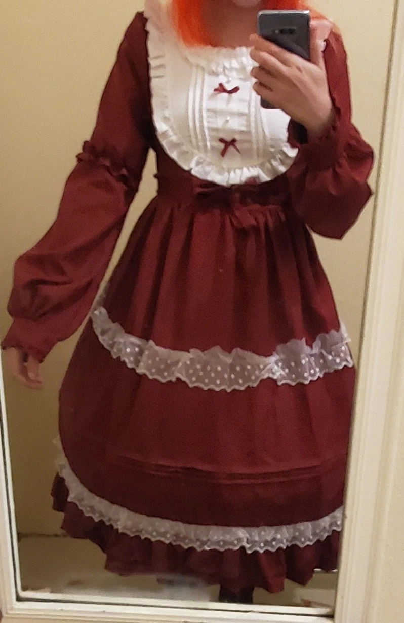 Red long vintage Lolita style dress size S with petticoat