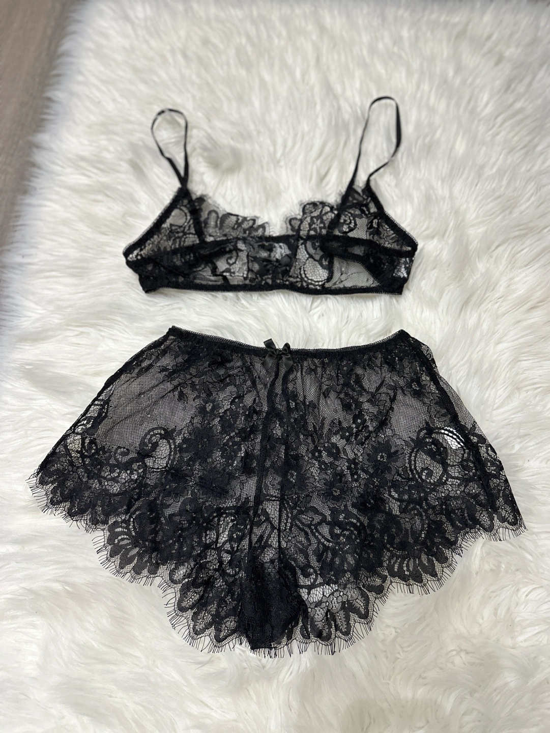 991NEW ONE Gorgeous black lace lingerie set. Includes a bralette and shorts. Medium size.