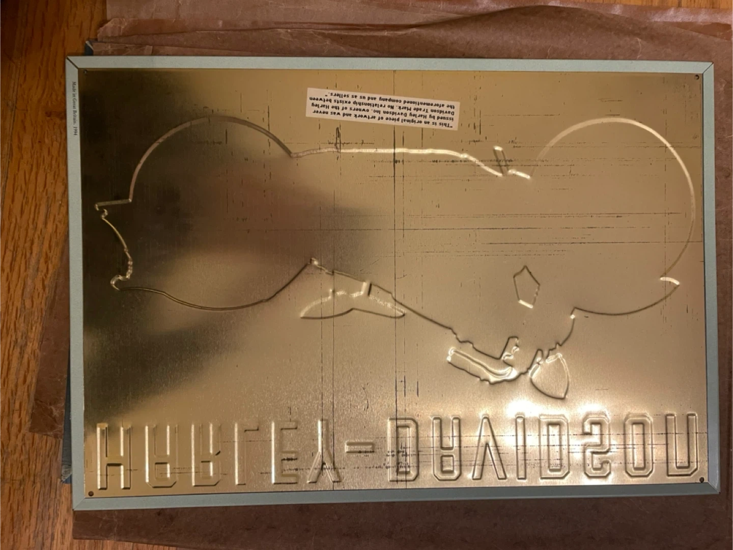 Selling a Harley-Davidson "The 61 OHV Twin" metal sign. It's a great piece for any motorcycle enthusiast or collector! The sign features a classic Harley-Davidson motorcycle design. Made in Great Britain, 1994