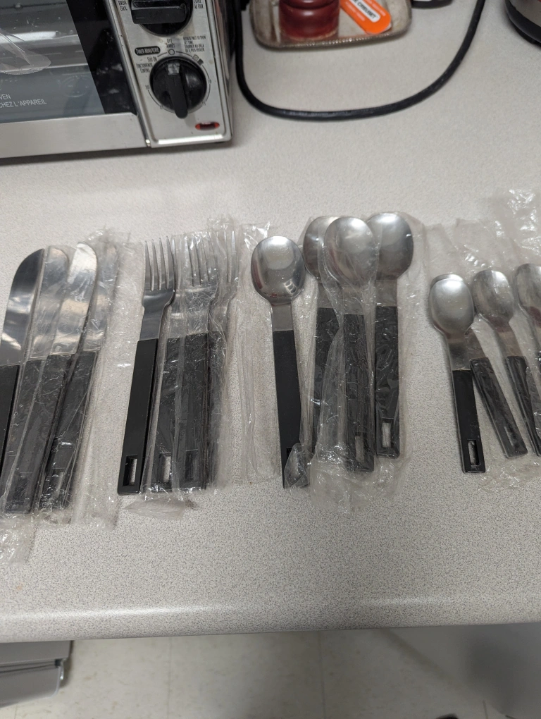 Set contains, 4 knives, 4 forks, 4 tablespoons, 4 teaspoons.