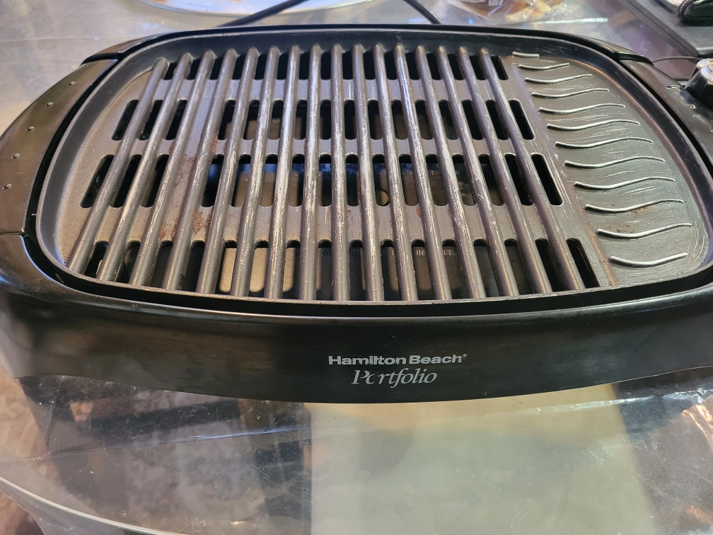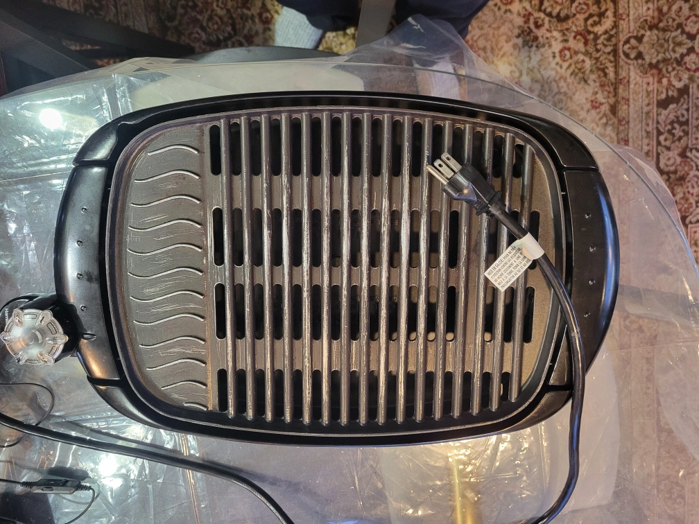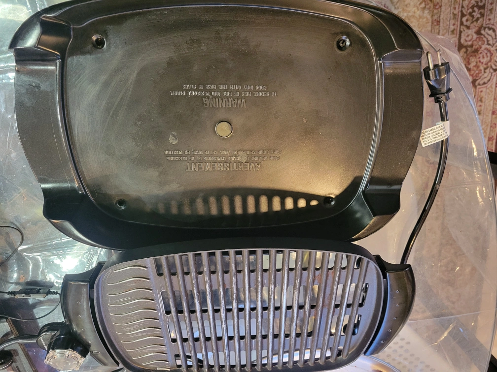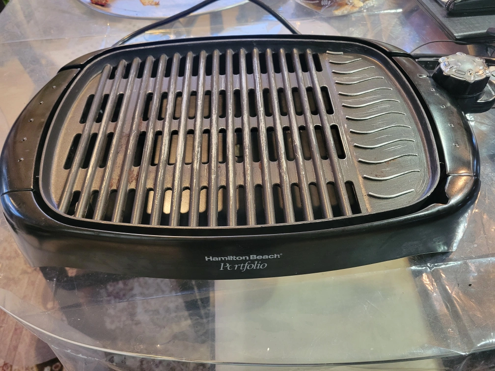 Indoor electric grill. Black color. Used condition. Shows signs of use.