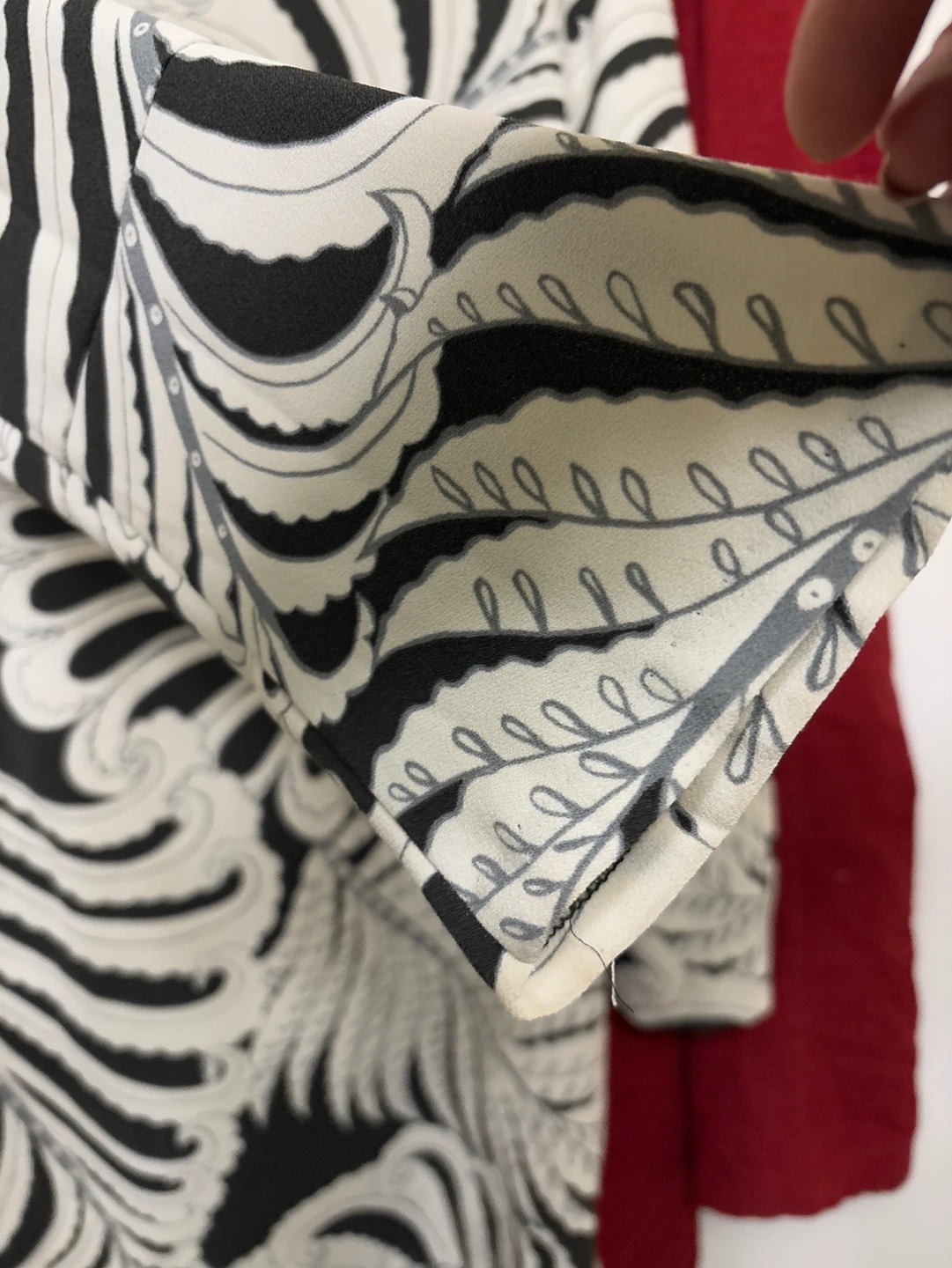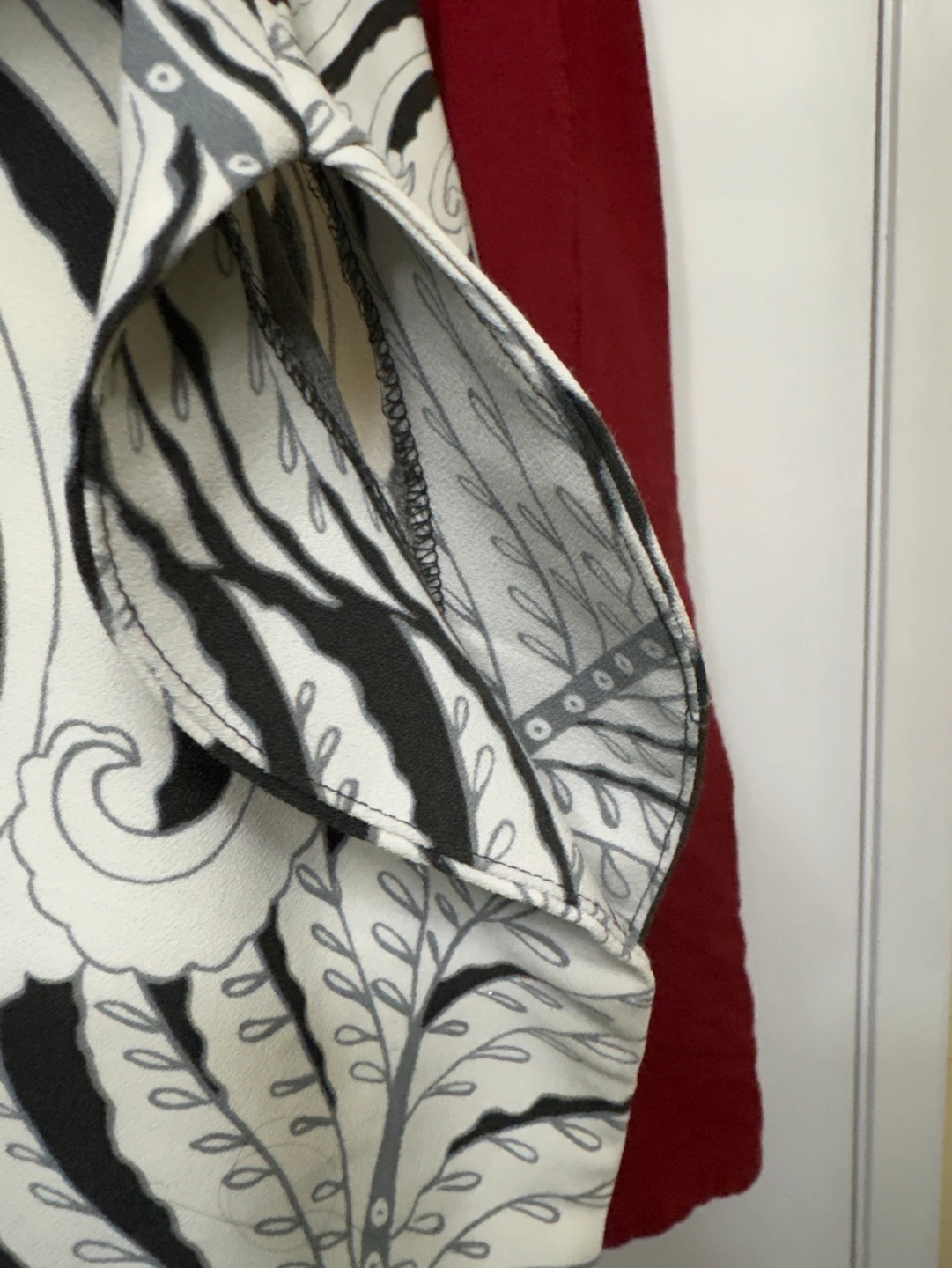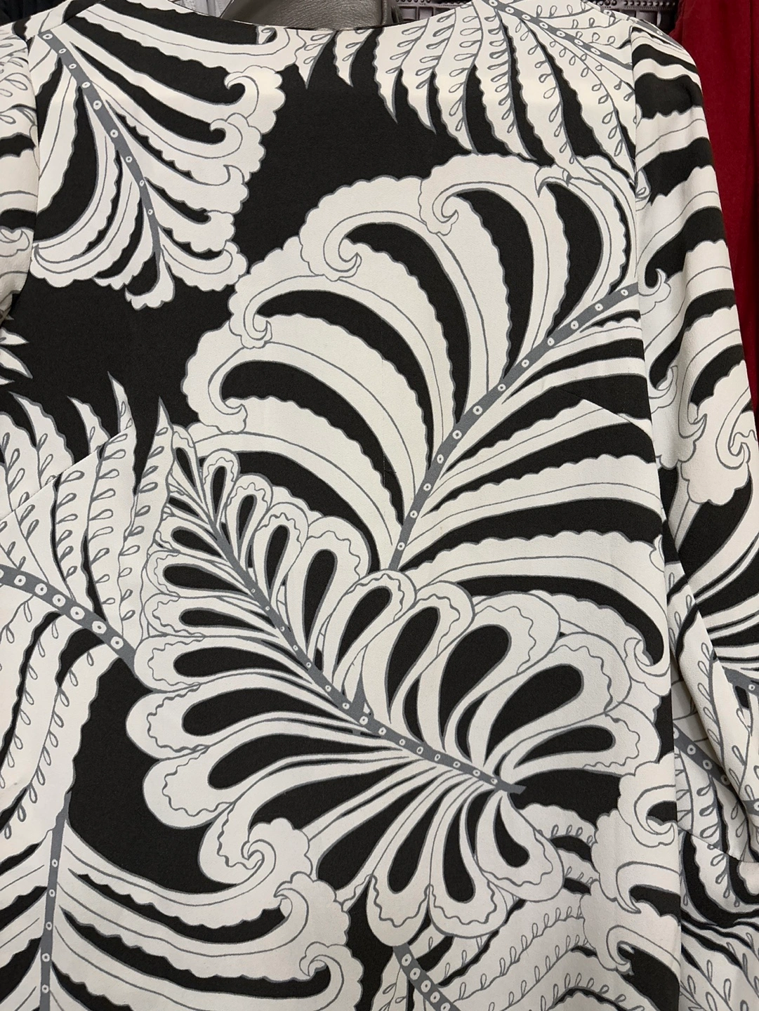 Women's blouse, size 6. Black and white floral pattern. Full sleeves. Flowy material. Bell sleeves with a u cut in bottom