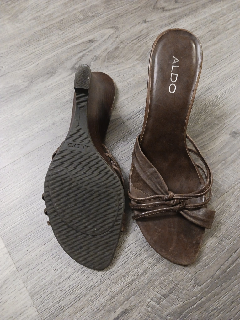 Brown Leather Aldo Wedge Sandals