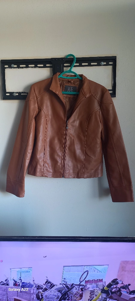 Women's brown faux leather jacket. Zipper closure. Long sleeves. Size M