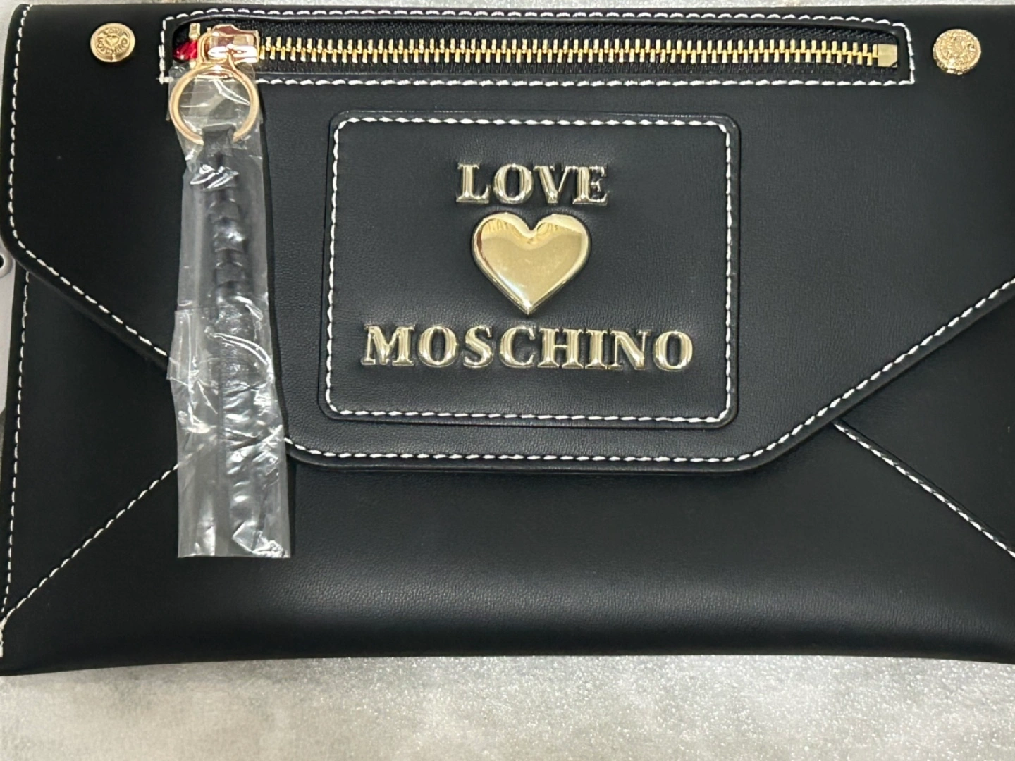 Love Moschino Black Envelope Clutch Bag with Gold Chain