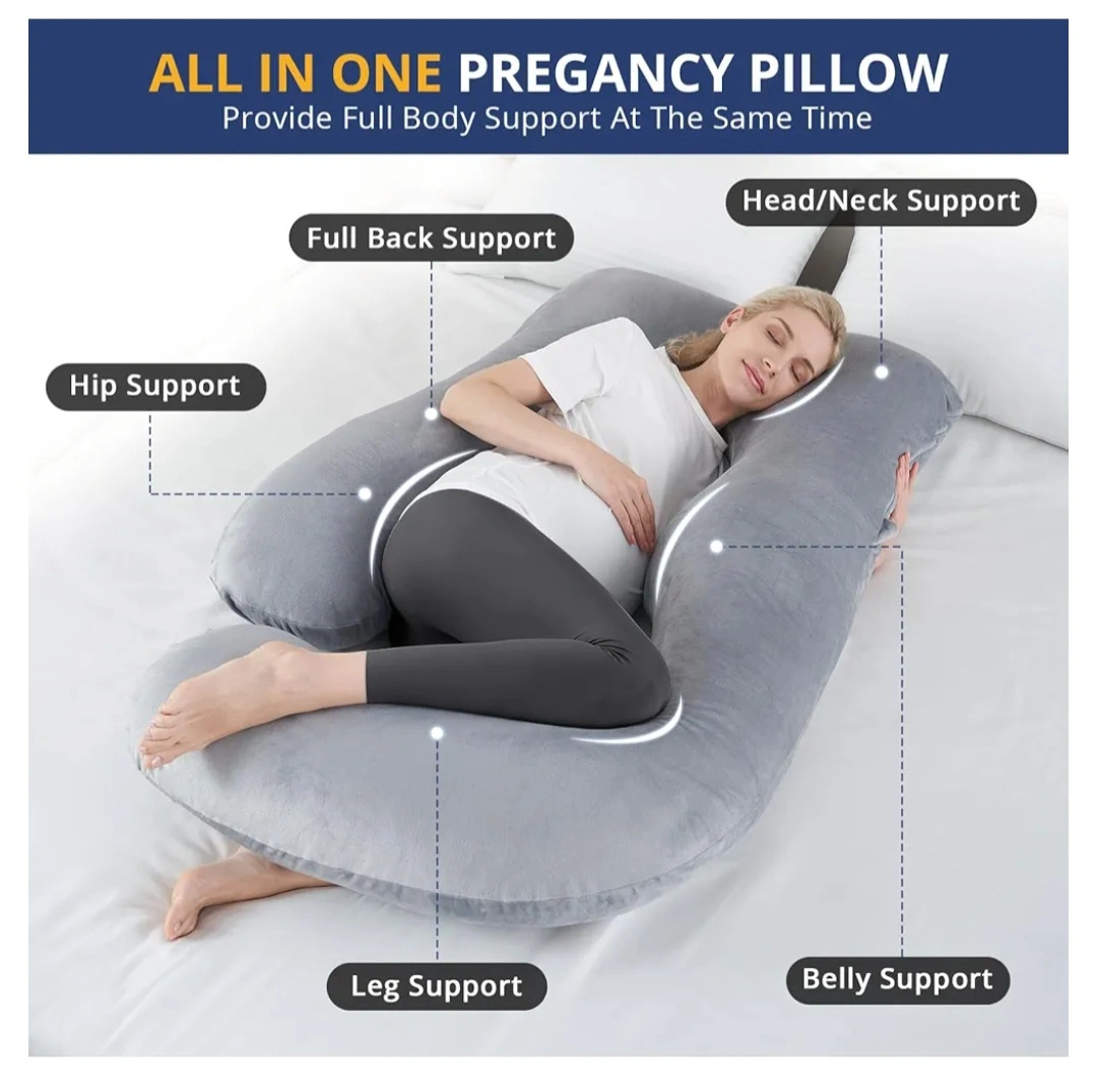 10Full body support pregnancy pillow. Grey colour. Provides support for head, neck, back, belly, hips and legs. Excellent condition.