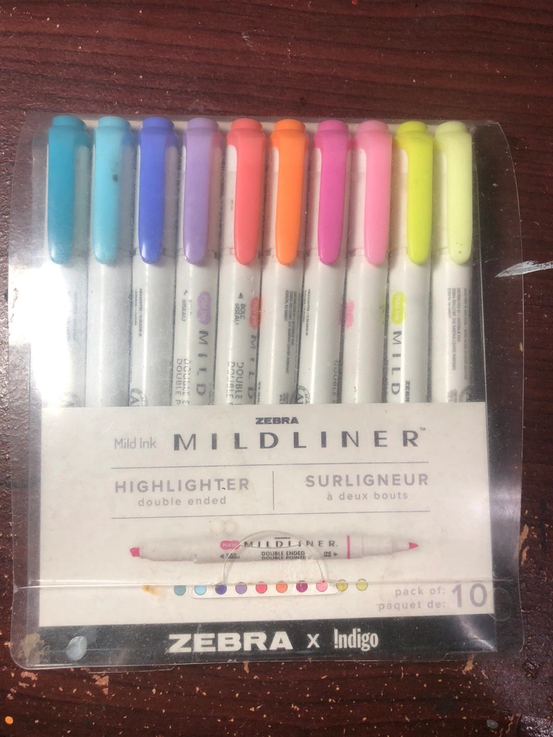All are basically brand new, except for the blue and pink ones. Those ones the colour rubbed off from being in a pencil case so long, but the highlighter is barely used.