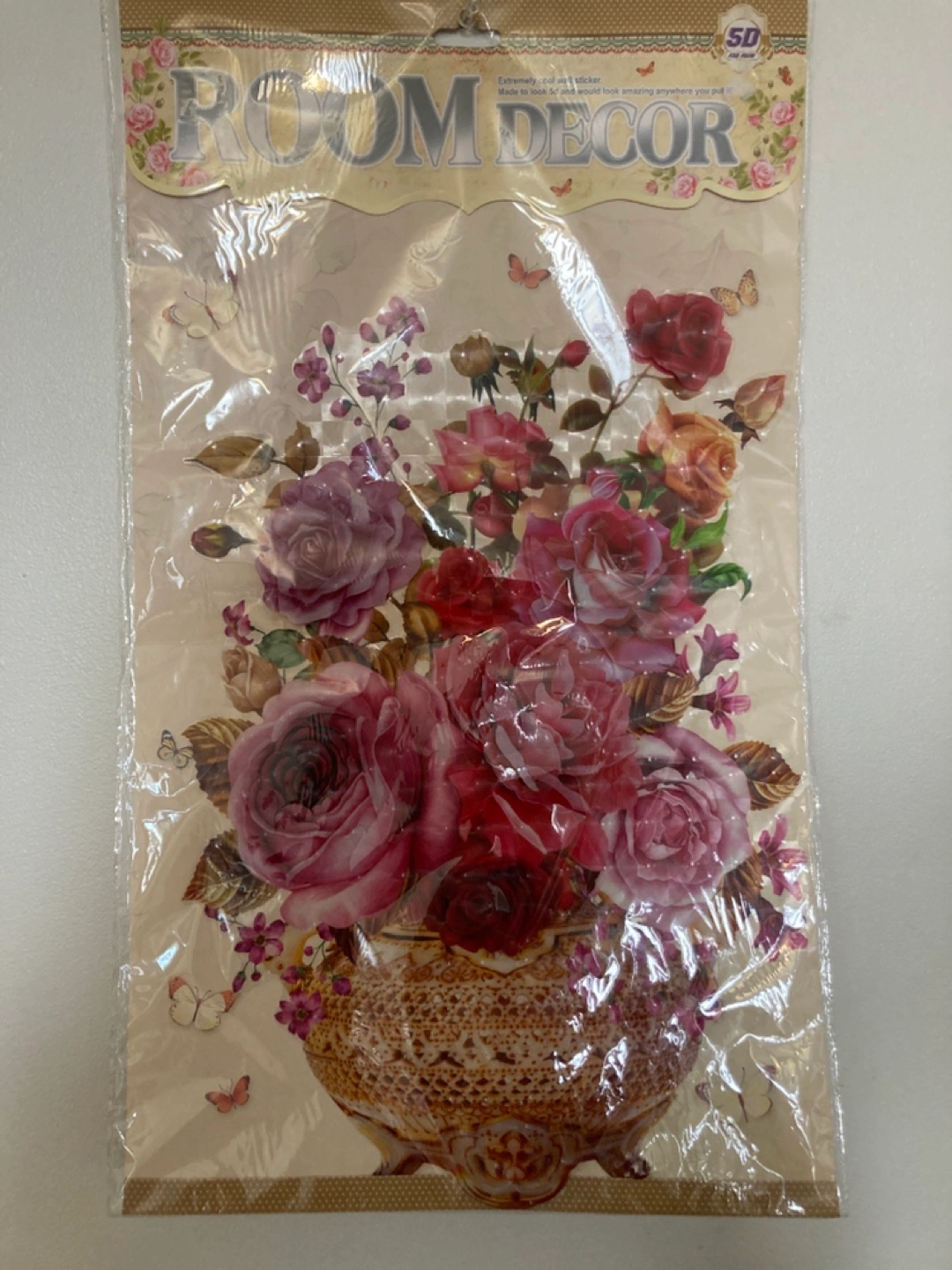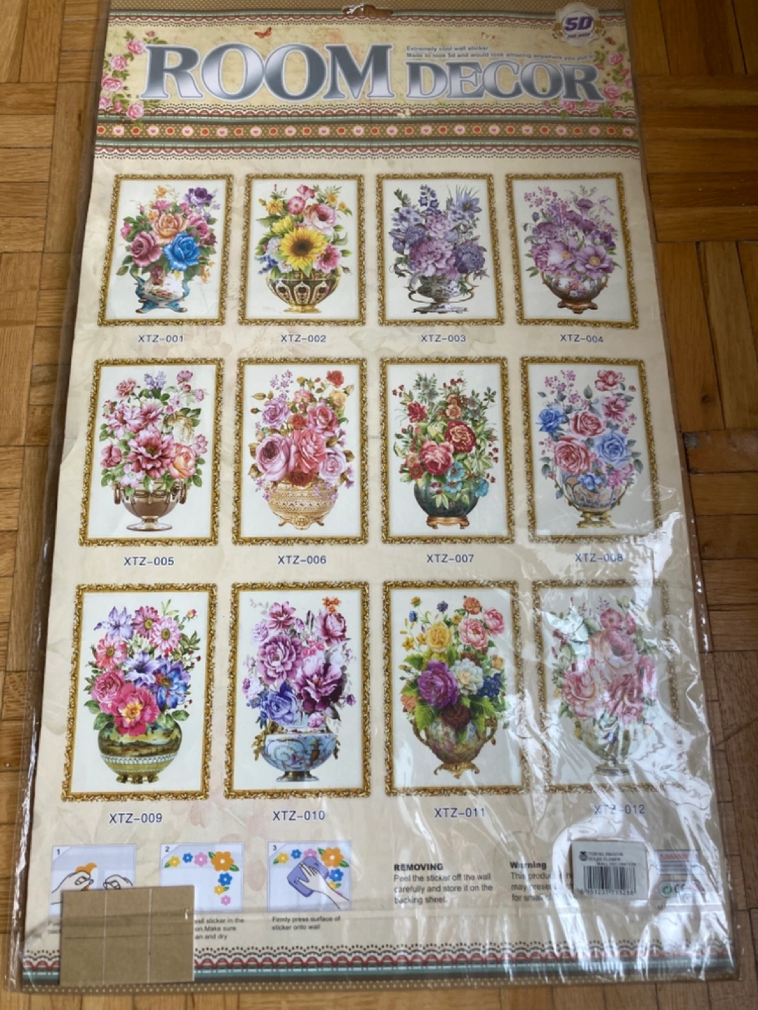 out of twelve one piece of 5D room decor wall stickers. Features various floral arrangements in ornate vases. Easy to apply and remove. Adds elegance to any room. Ho North York go π¨π¦