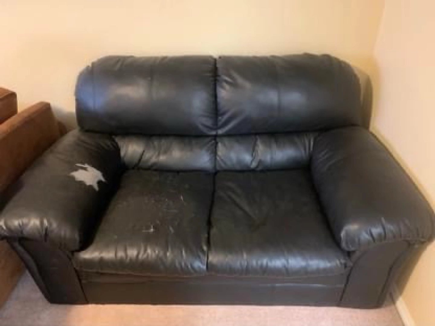 Black Leather Loveseat - Minor Damage #freecycle