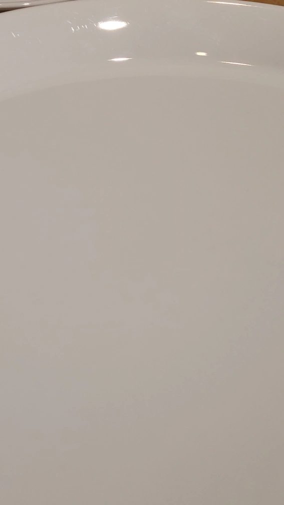 Used, no chips but microscratches from cutlery (last picture for detail). Not very visible.
