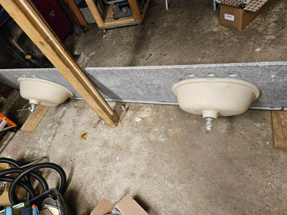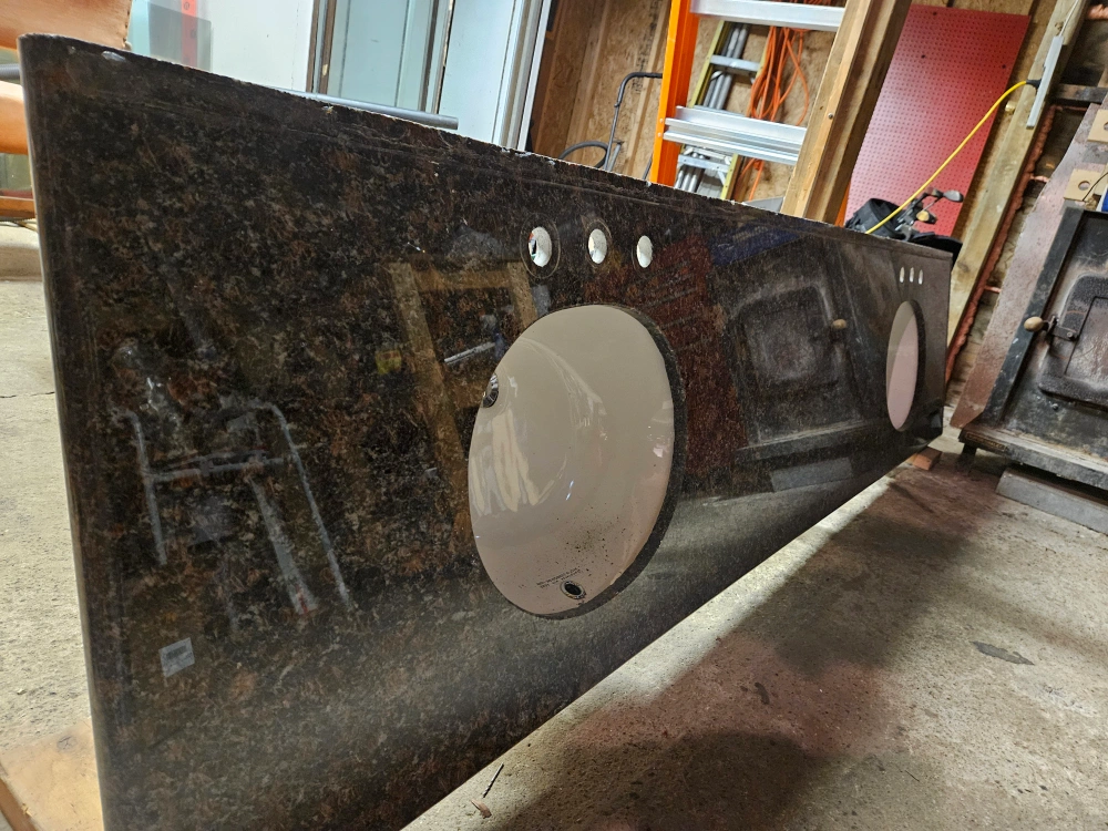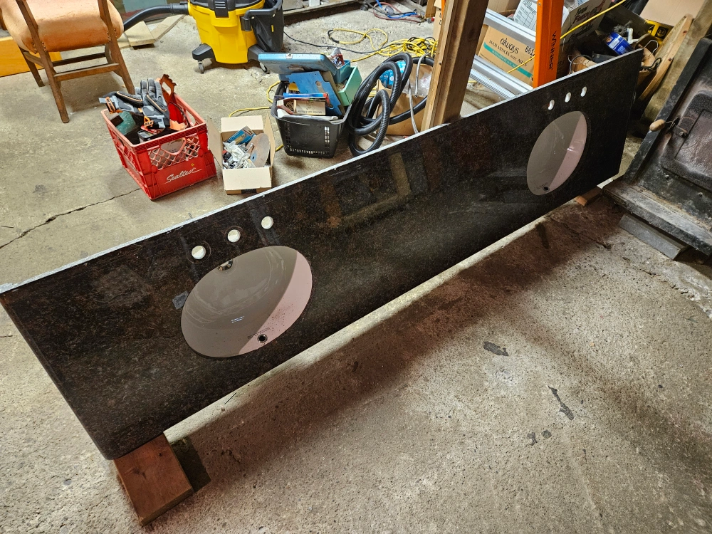 Double sink counter: 97.5" x 22.75" x 3/4"