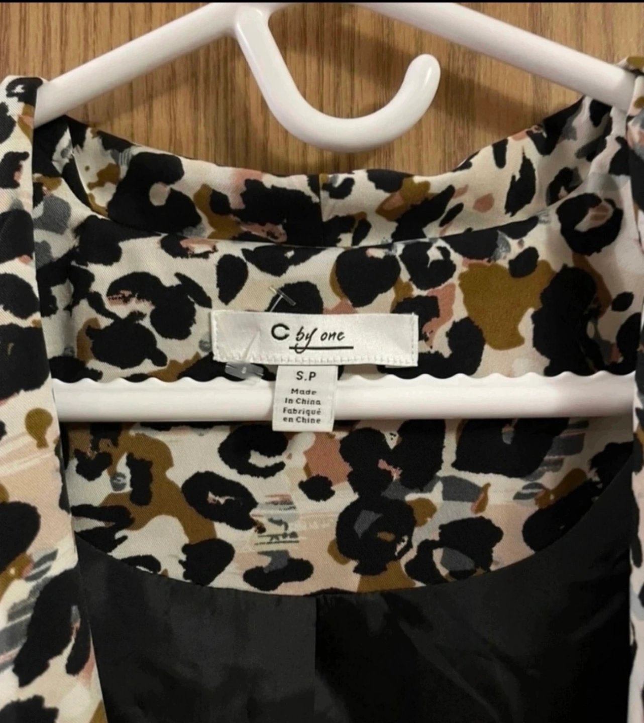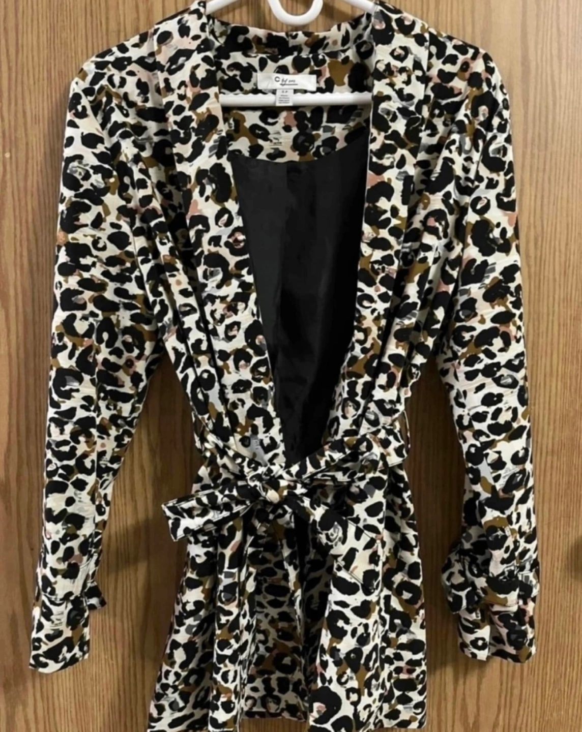 Lightweight jacket. Leopard print. Long sleeves. Self-tie belt. Size small.