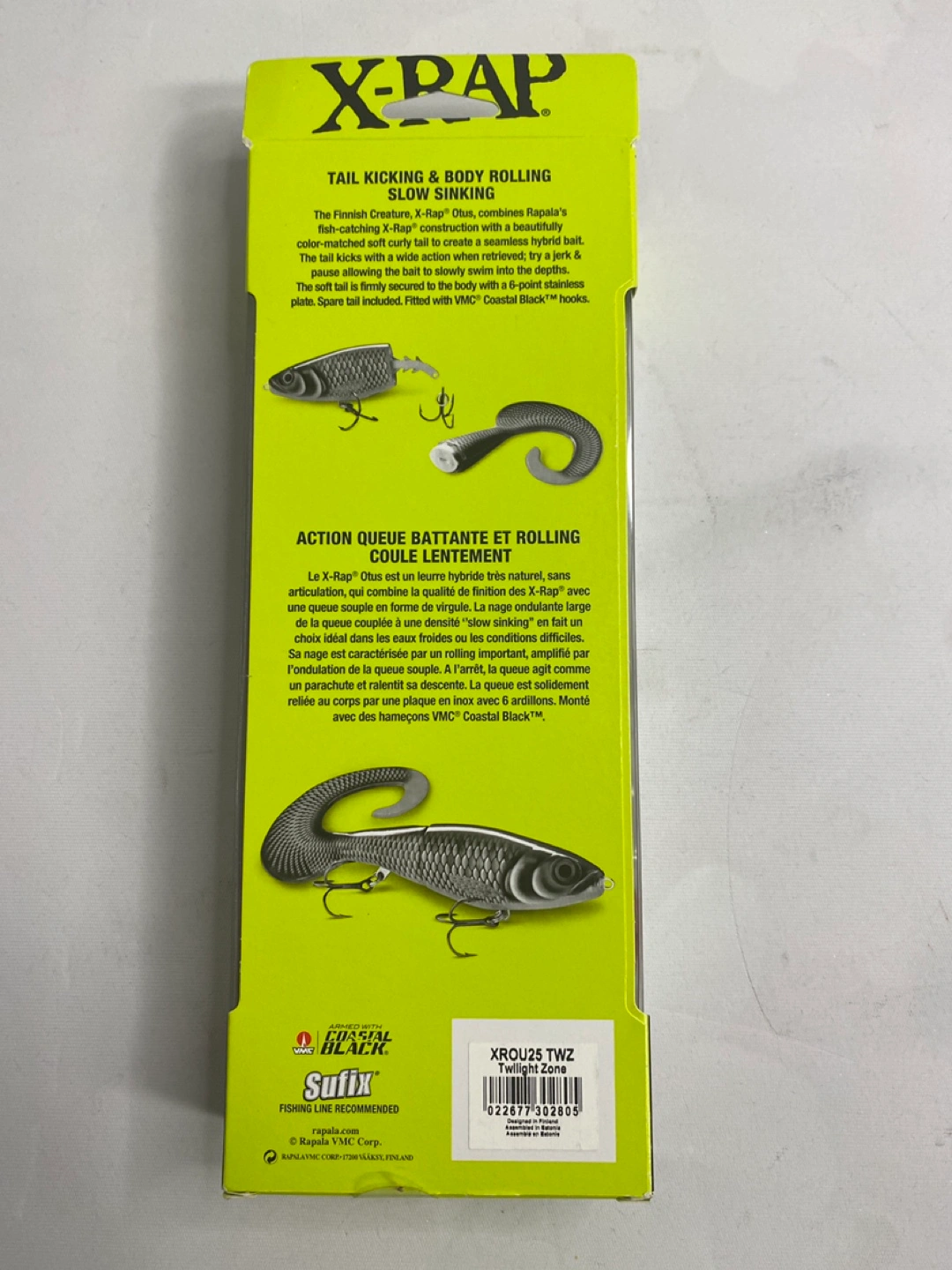 Brand new Rapala X-Rap Otus fishing lure. Slow sinking, soft tail. XR0UZS TWZ Twilight Zone colour. Great for catching big fish.