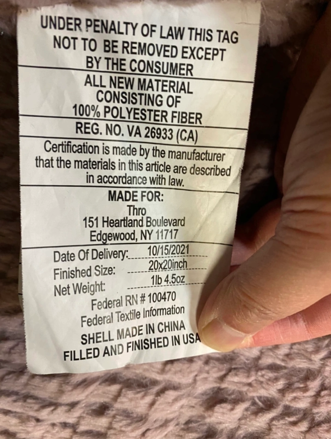 Excellent condition! From a pet and smoke free home. Can wash in the laundry machine. Extremely soft and fluffy. No stains or rips!
