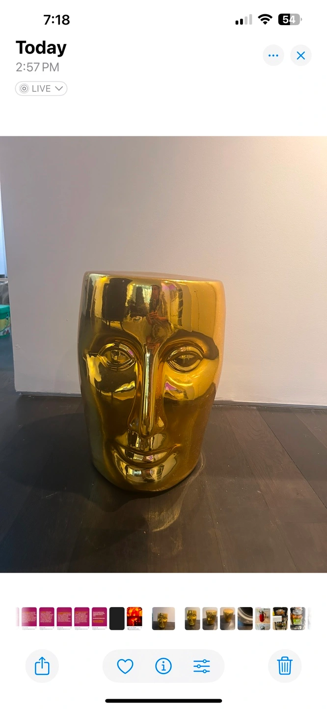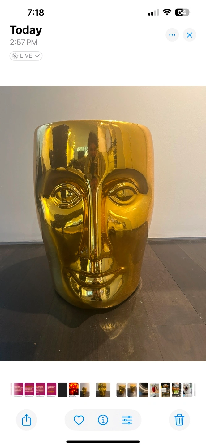 the ceramic stools painted in gold/bronze are statement pieces that can complement any contemporary designed home.
