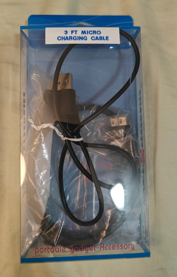 New, unused 3ft Micro USB charging cable for C port Hard drive and a 3 ft Micro USB charging cable for Samsung Galaxy tablet.