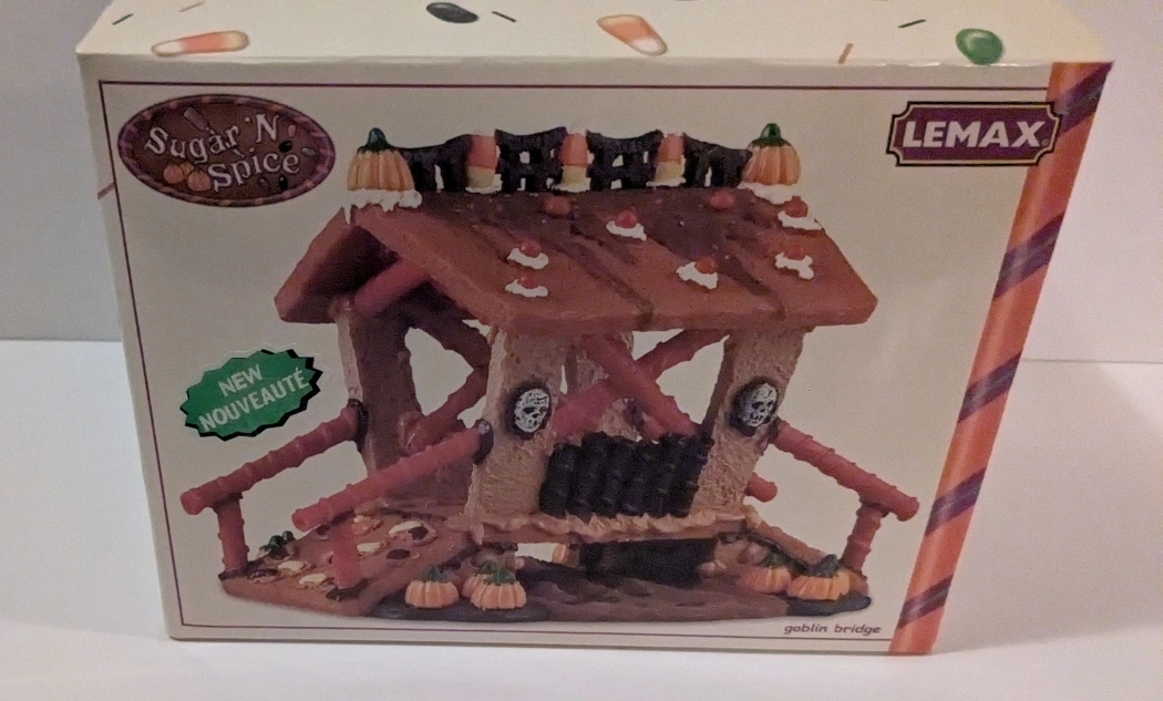 Lemax Sugar N Spice Halloween Village collectible. Goblin Bridge design. Part of a larger village collection. Box shows some shelf wear.