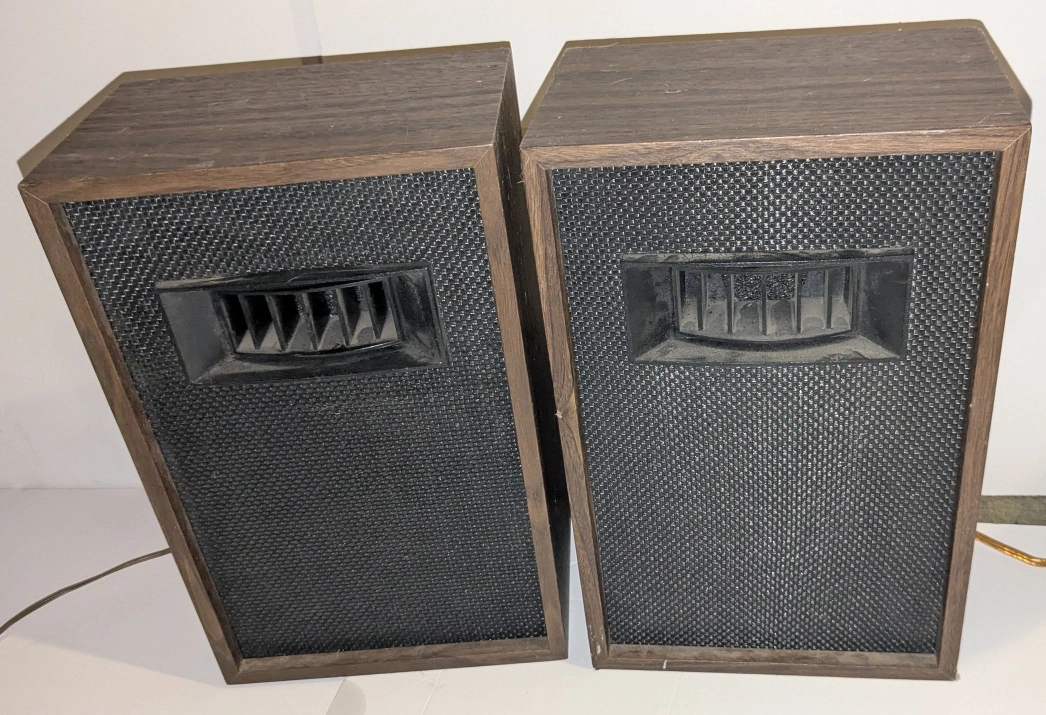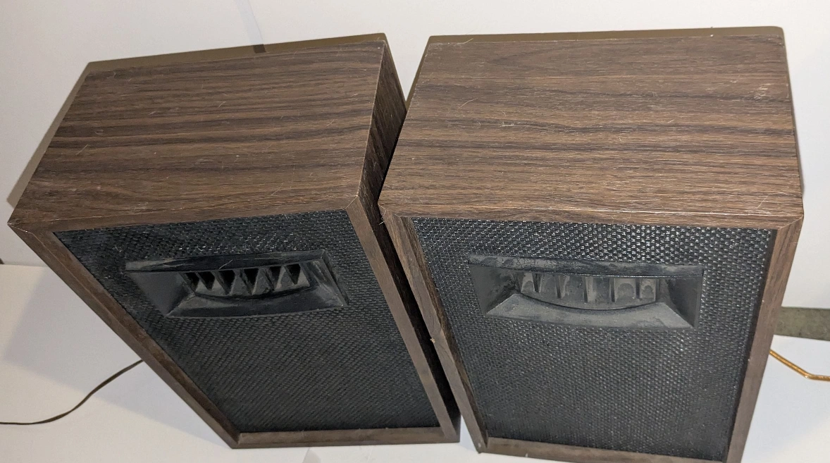 Pair of vintage speakers. Wooden cabinets. 8 ohms. Made in Japan. Shows some wear.