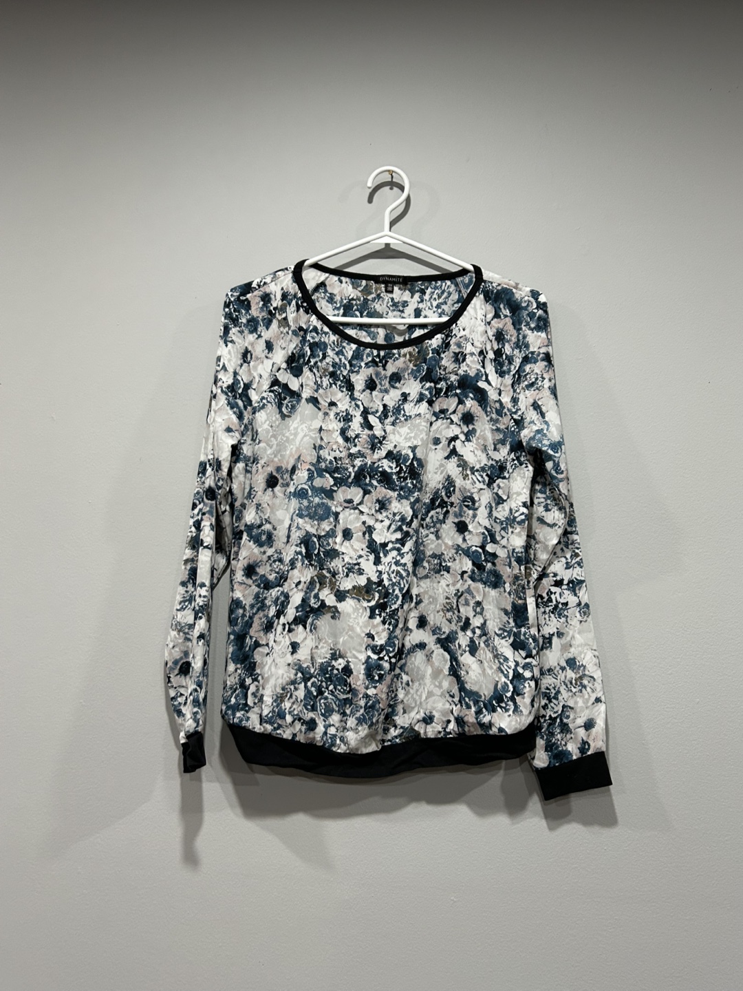 From dynamite in a size small. Loose fit, 100% polyester. Black trim on sleeves, neckline and hem. Excellent condition. Shoot me a bundle offer!