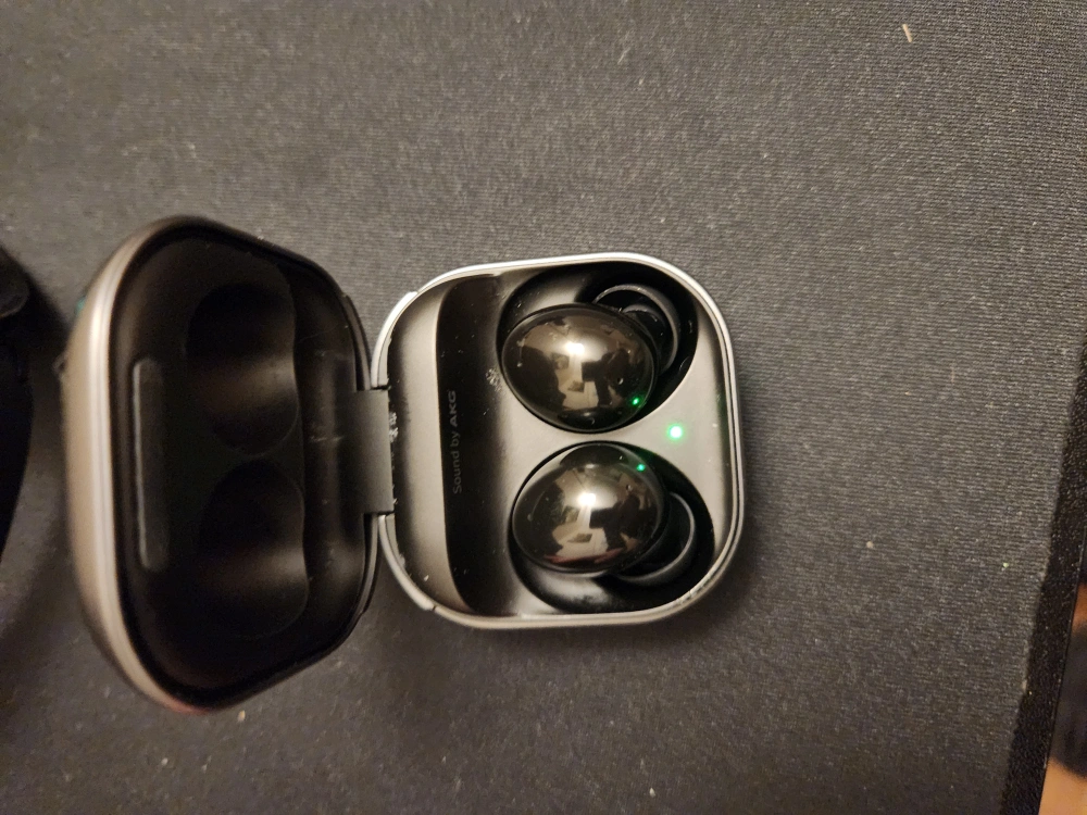 Lightly used Samsung Galaxy Buds 2. Wireless earbuds in grey. Charging case included. Great sound quality. Perfect for listening to music or podcasts.