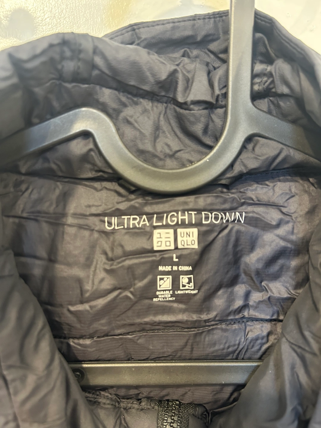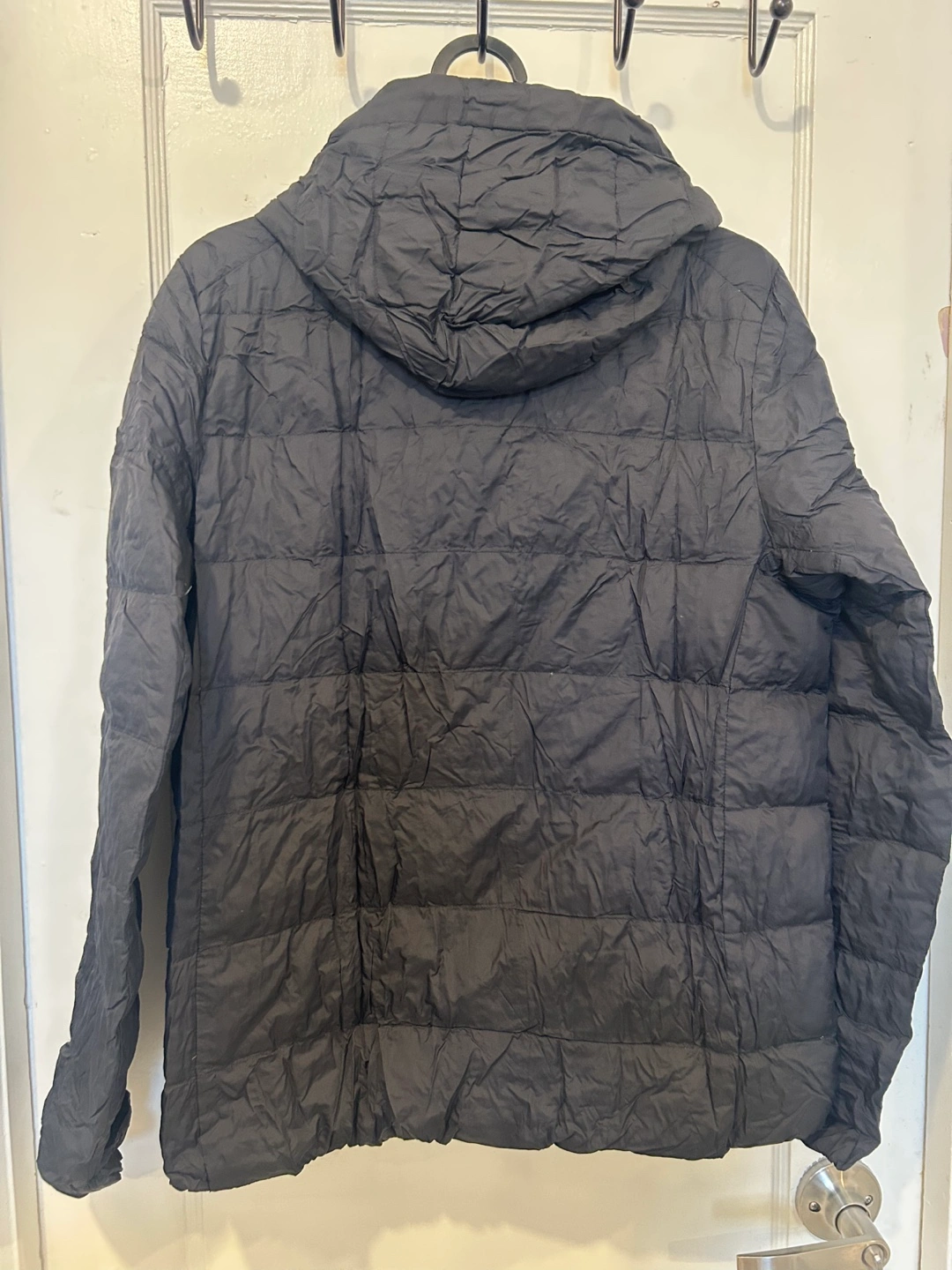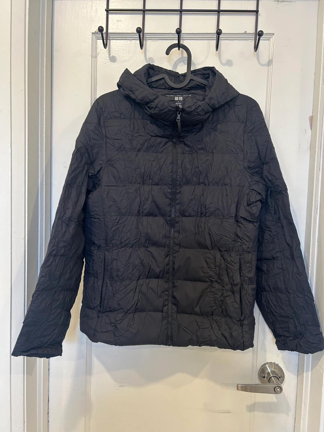 Good condition. Black Uniqlo Ultra Light Down jacket. Size large. Packable design. Hooded with pockets.