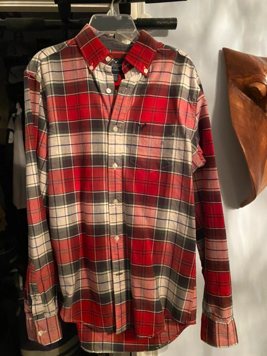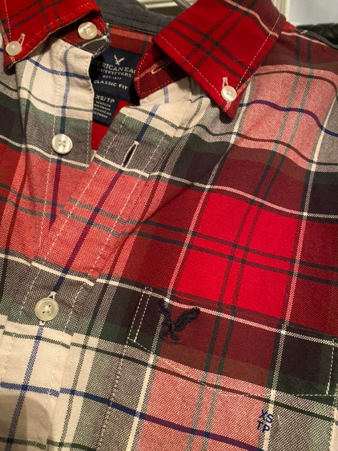 American eagle mens brushed cotton plaid shirt. Classic fit Size XS , comfortable fit. Never worn