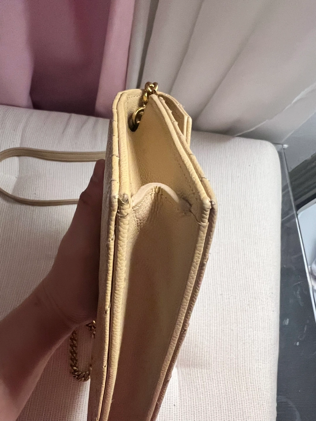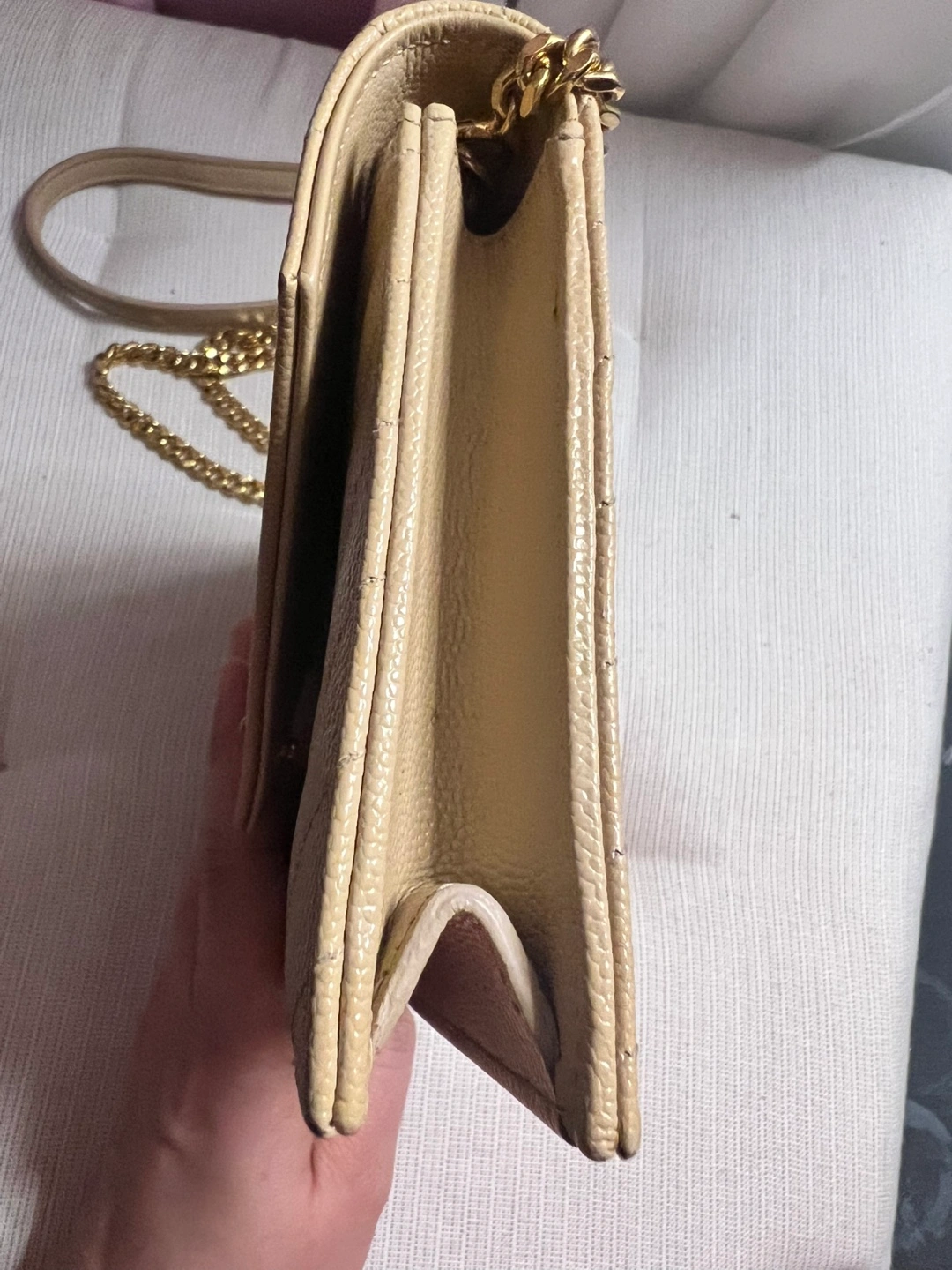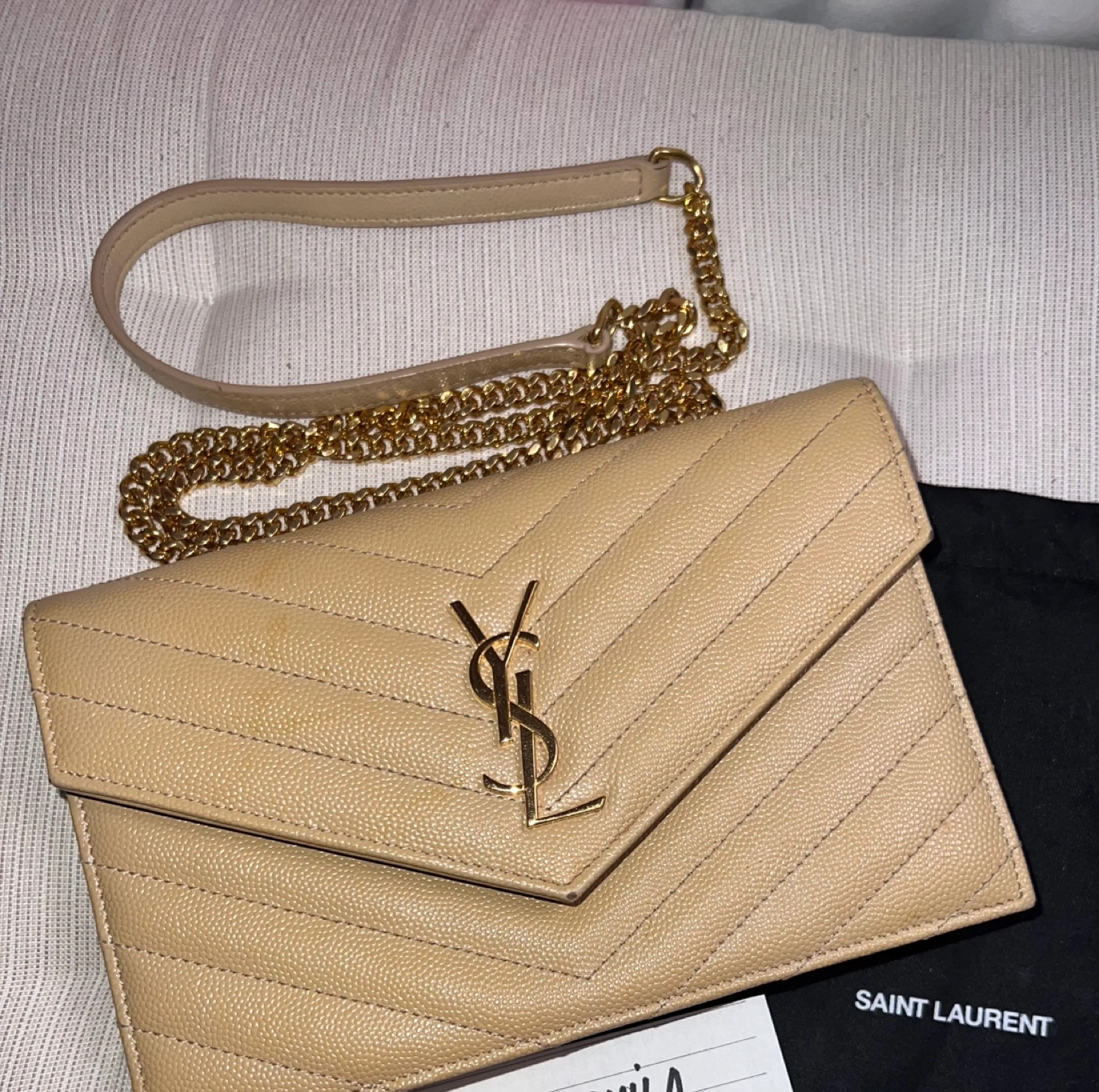 Saint Laurent Beige Quilted Chain Wallet on Strap
