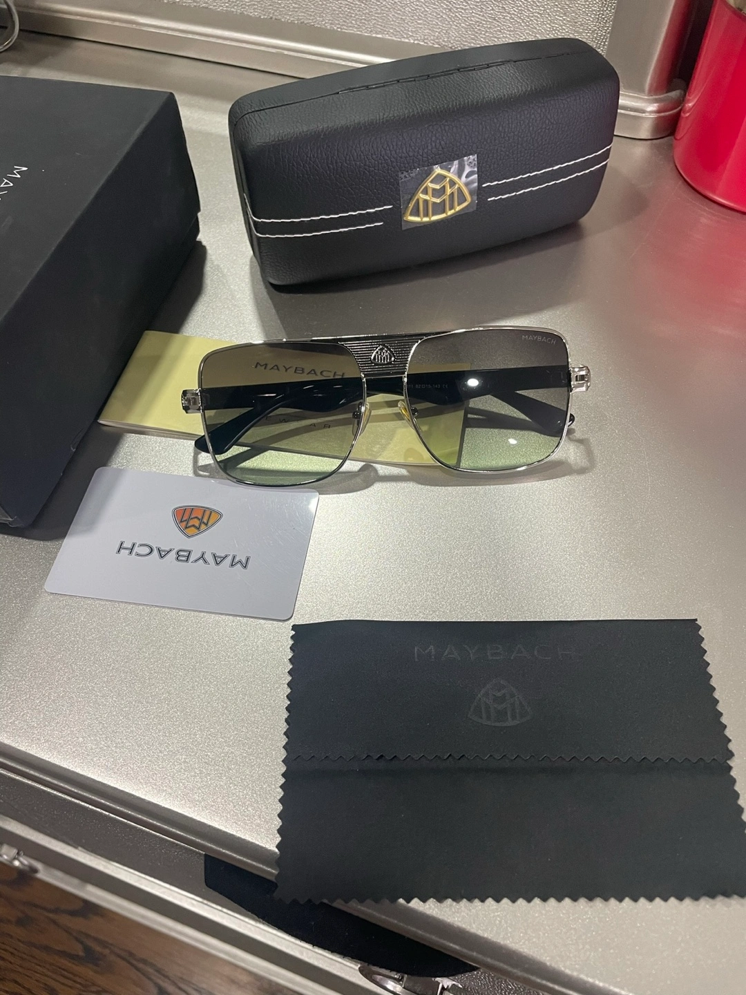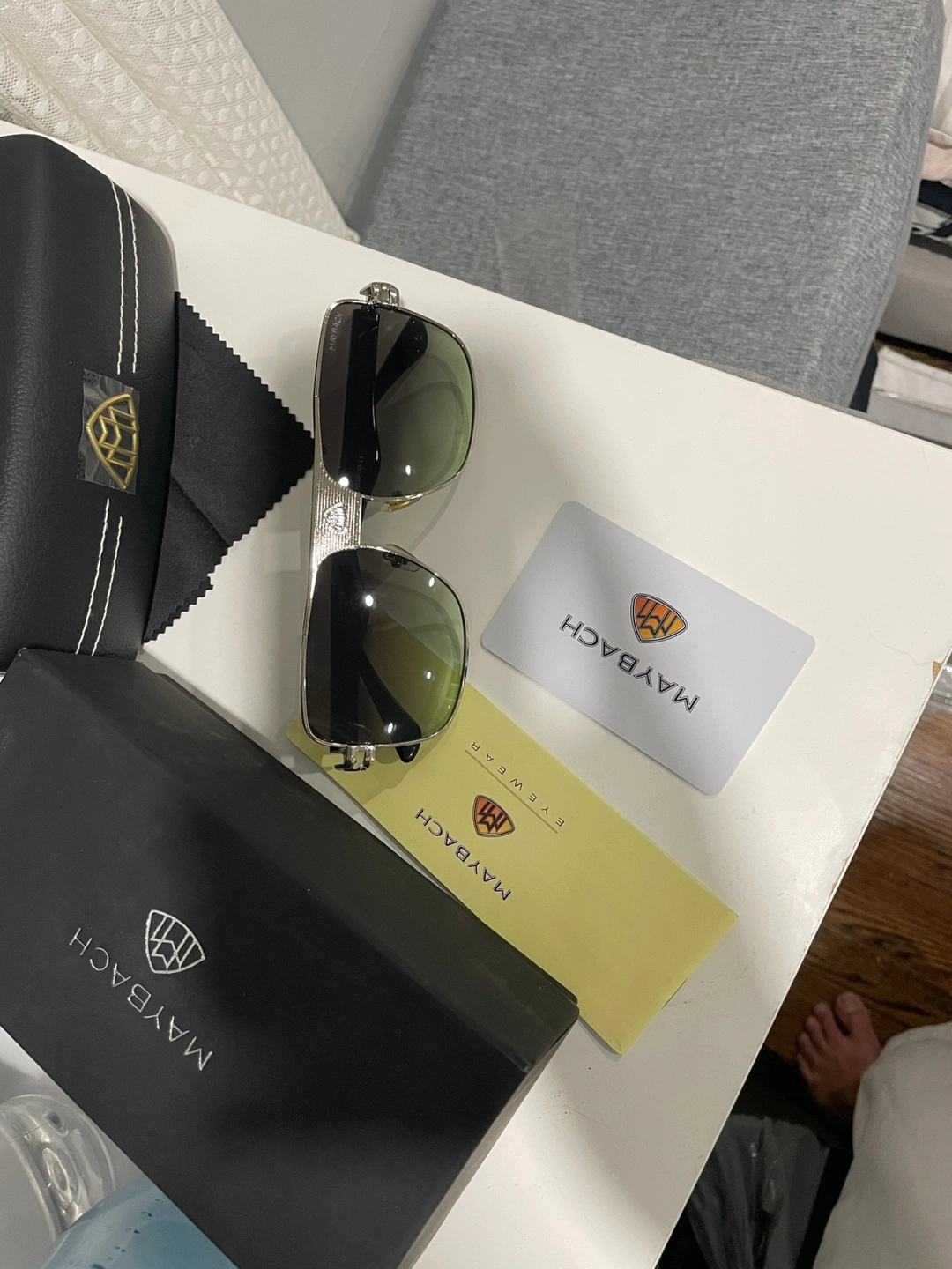Men's sunglasses, silver frame, gradient brown lenses. Includes case, cleaning cloth, and paperwork. Brand new, never worn.