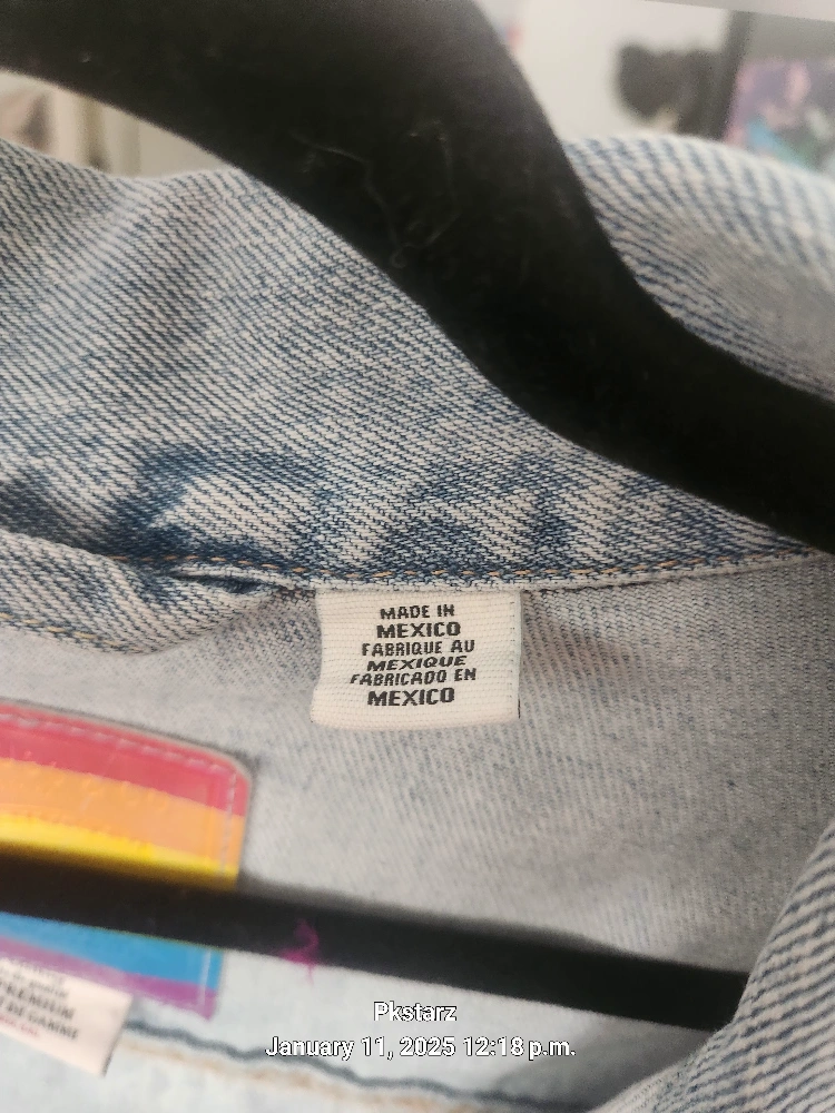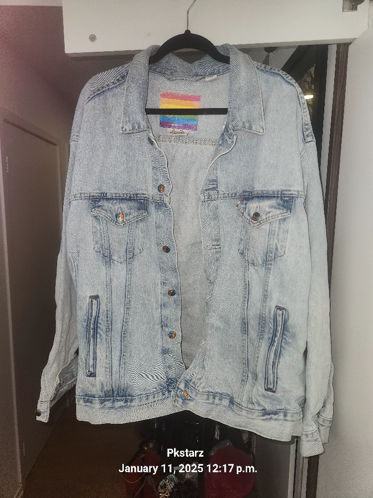 Size XXL. Features rainbow detailing on the label, buttons, and back. Unique design. Has the gender pronouns on the back