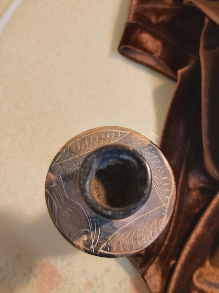 77Unique candlestick holder. Hand-carved stone. Intricate leaf designs. Small size. Perfect for a small candle. Make me an offer