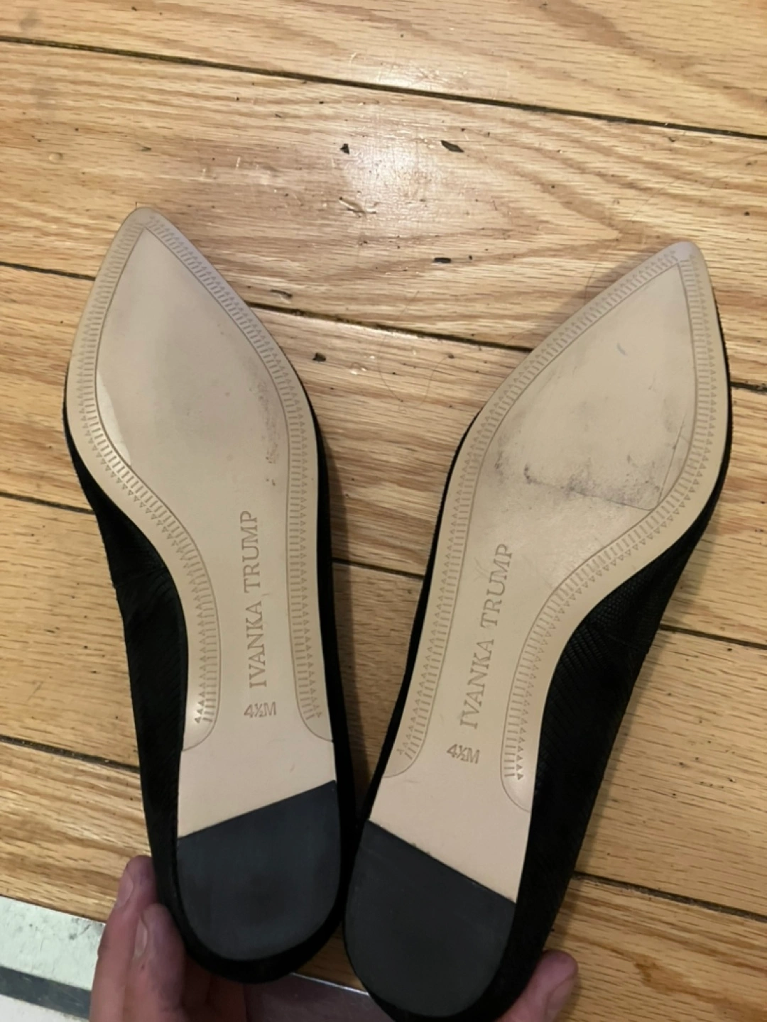 Women's black suede flats. Pointed-toe design. Size 4 1/2 M. Minimal wear.