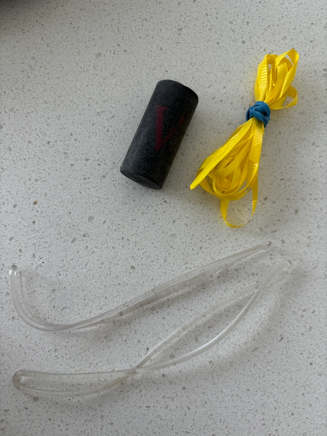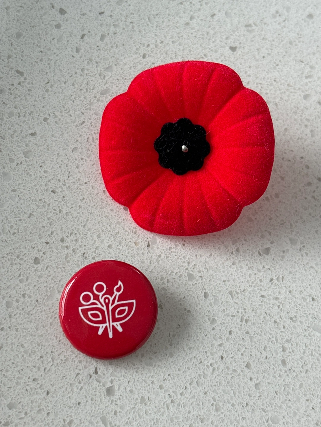 687FREE red button pin, poppy pin, Rubber wine cork, yellow ribbon, and two luggage tag ties . Great for crafting projects. Pick up at Dundas and River