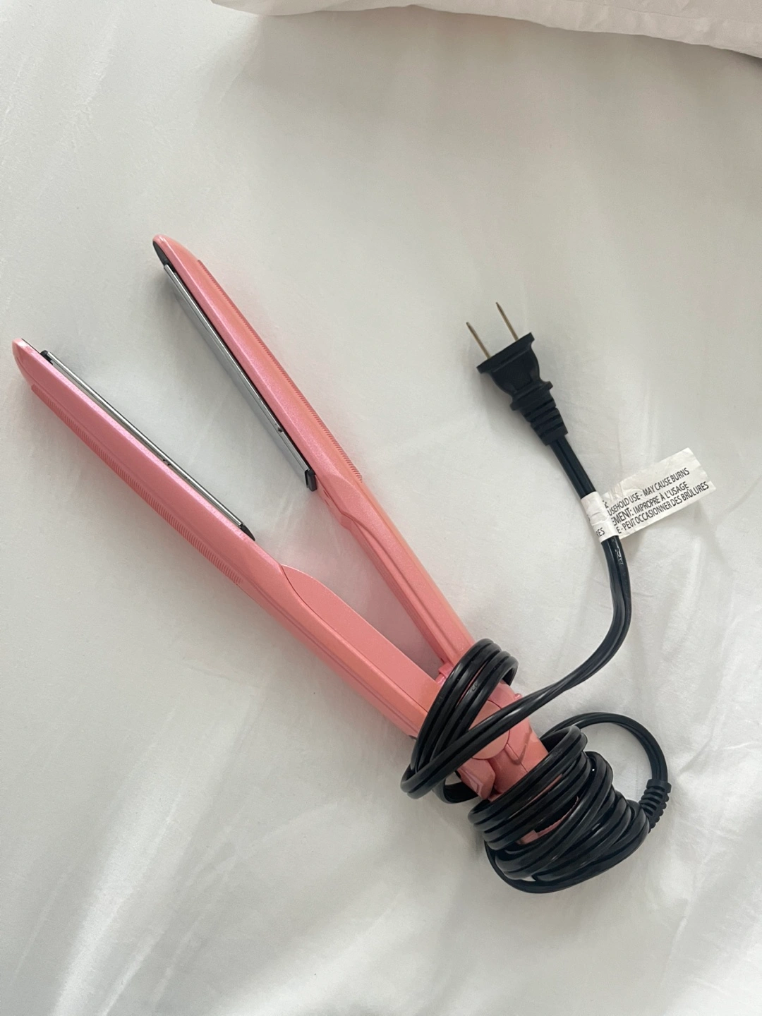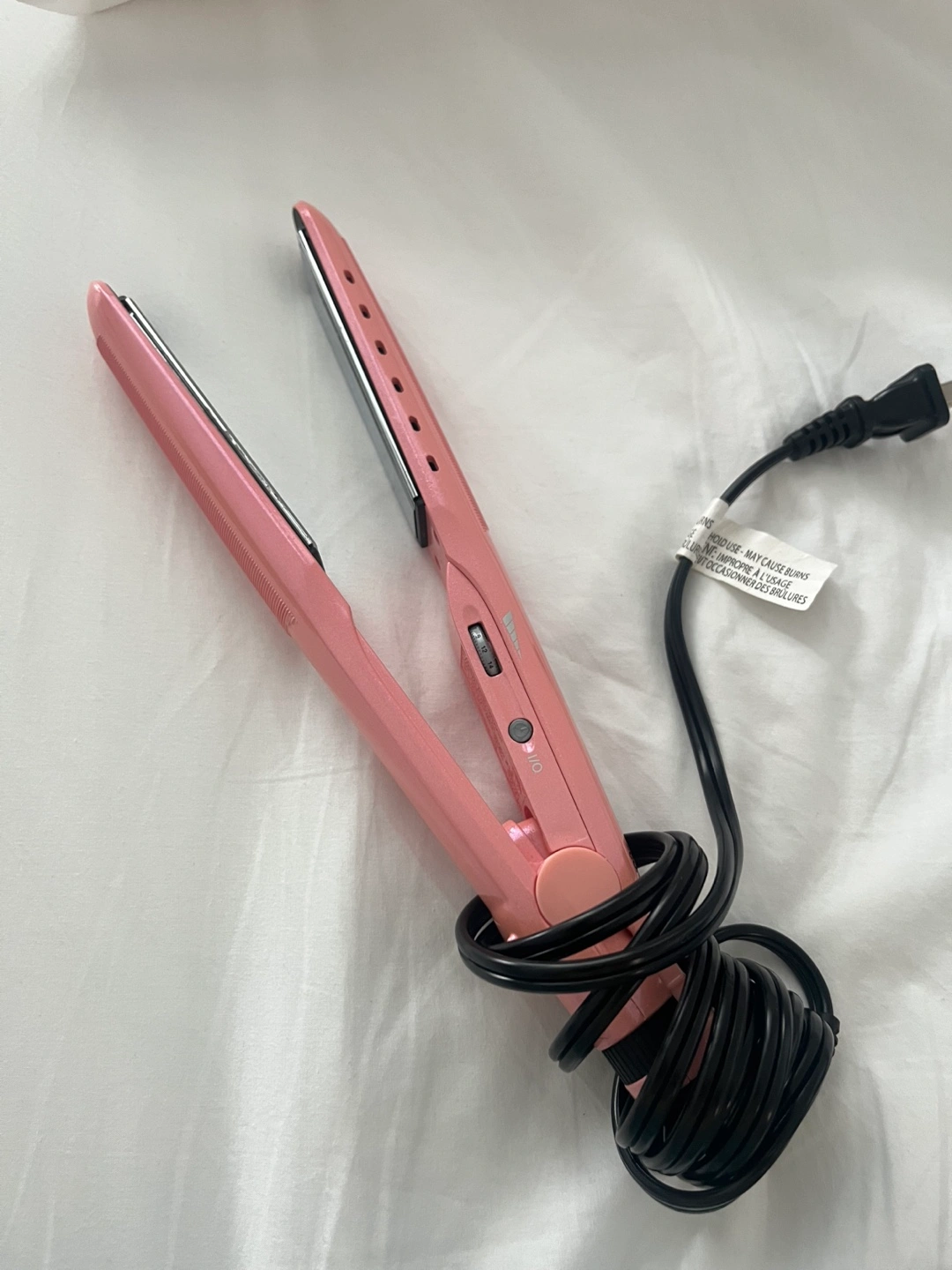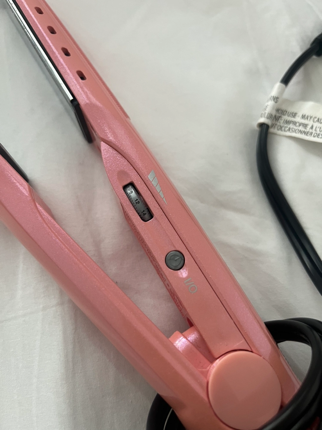 Pink flat iron. Adjustable temperature. Excellent for straightening hair.