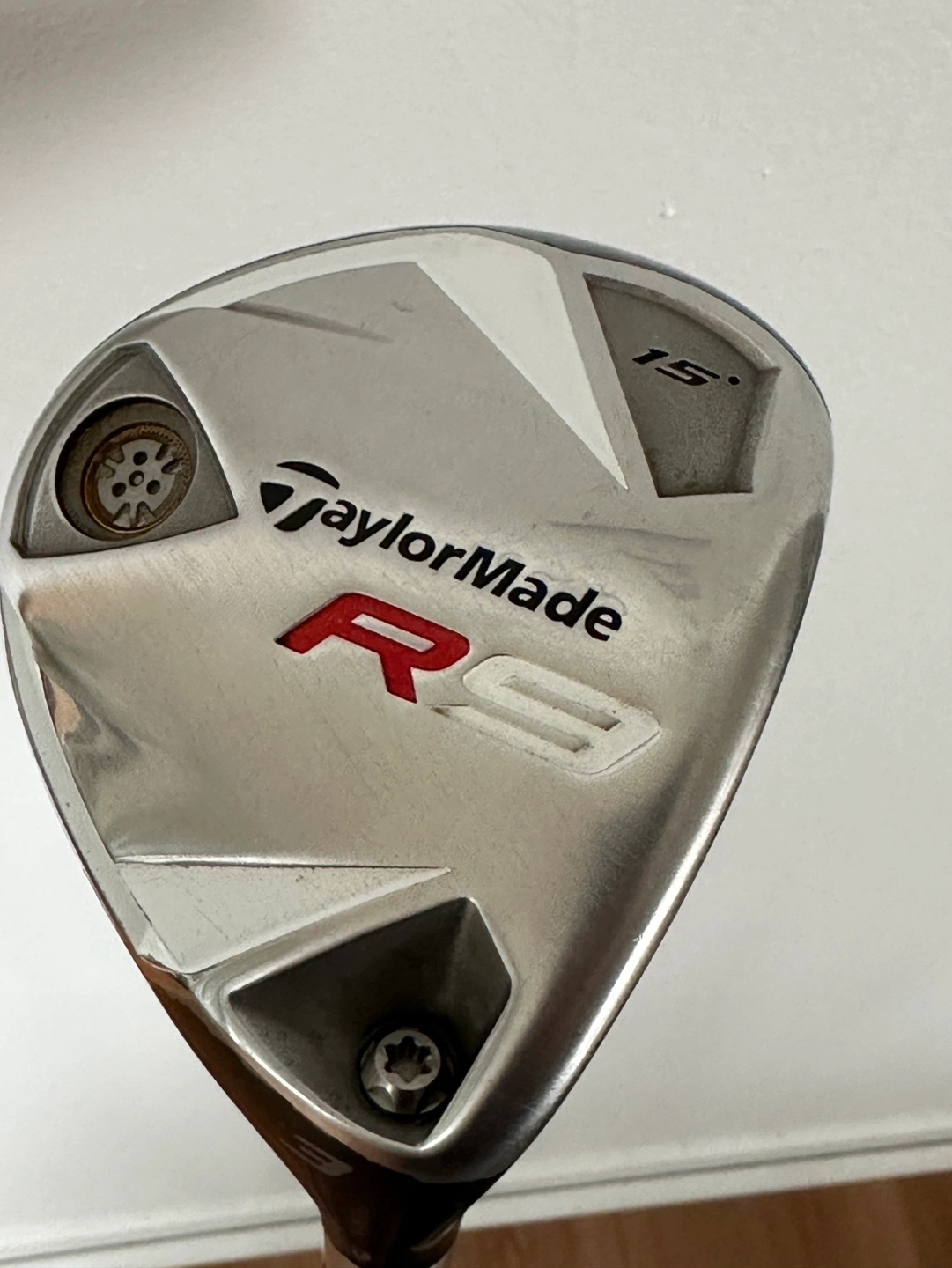 Used TaylorMade R9 15° right hand mens fairway wood. Good condition, some minor scuffs. Graphite shaft. Regular flex. Lots of life left with this club.