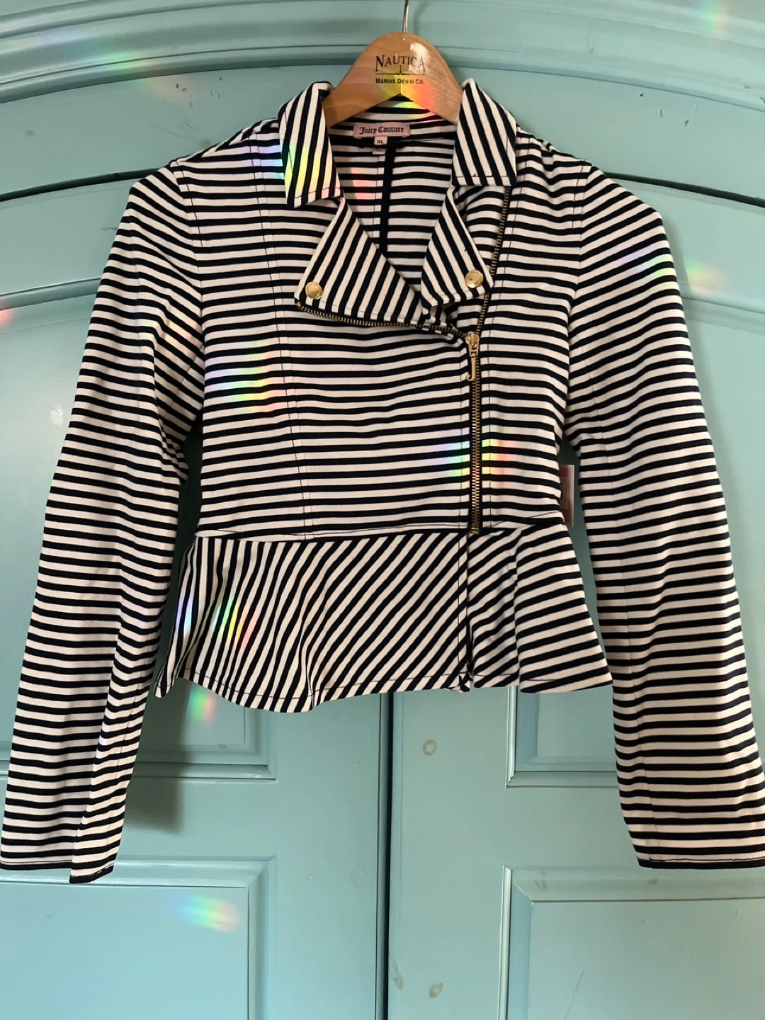 Brand new suit with moto style jacket. Great for a holiday party! Please check with JC’s website for size info. Although in original packaging with tissue, the box got more wear than the suit 😊