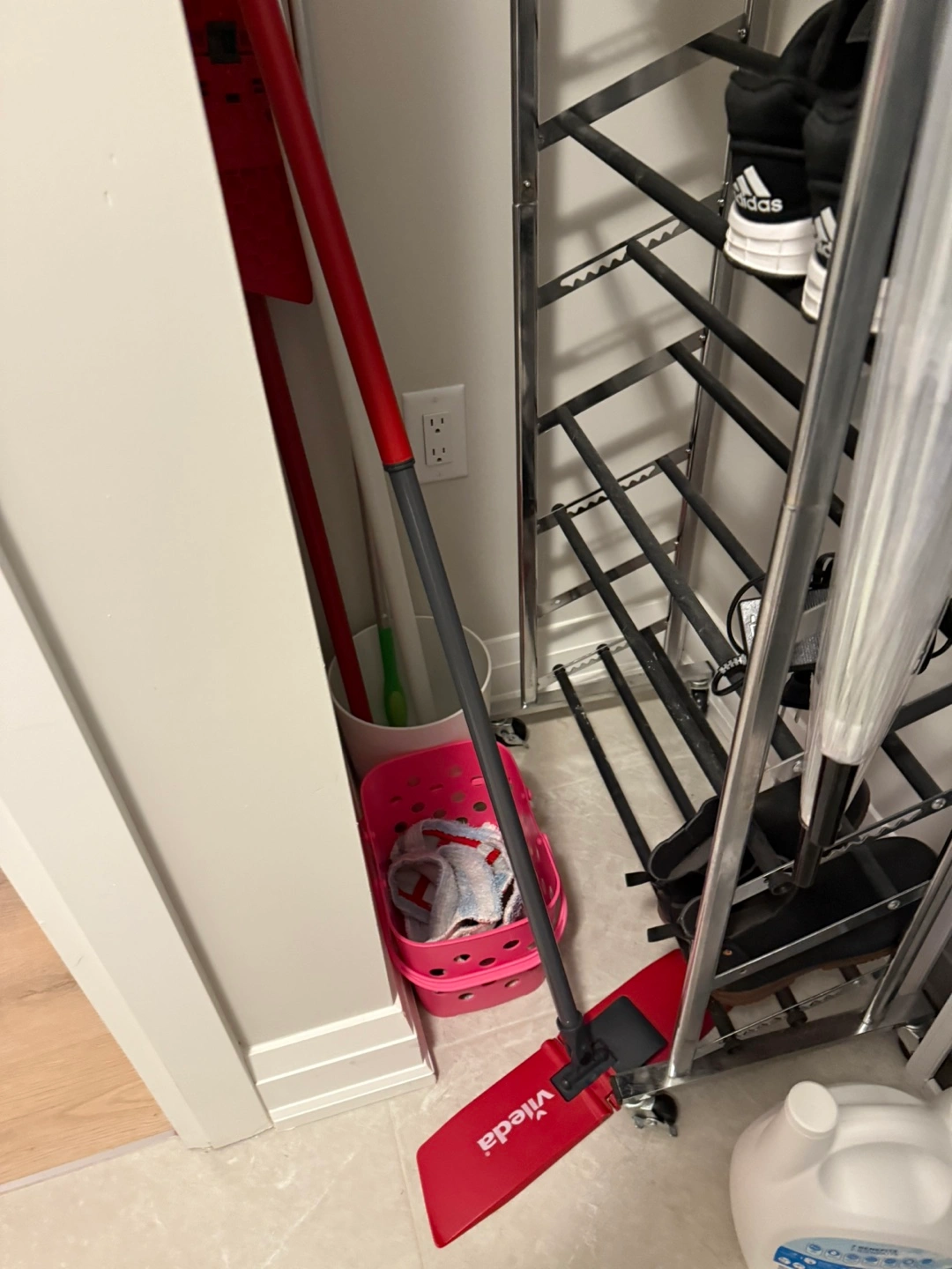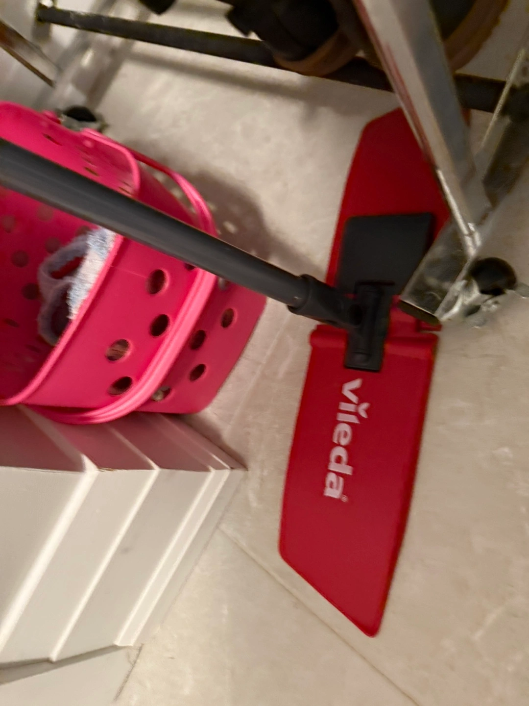 Floor cleaning mop. Red and grey. Includes mop head. Good condition.