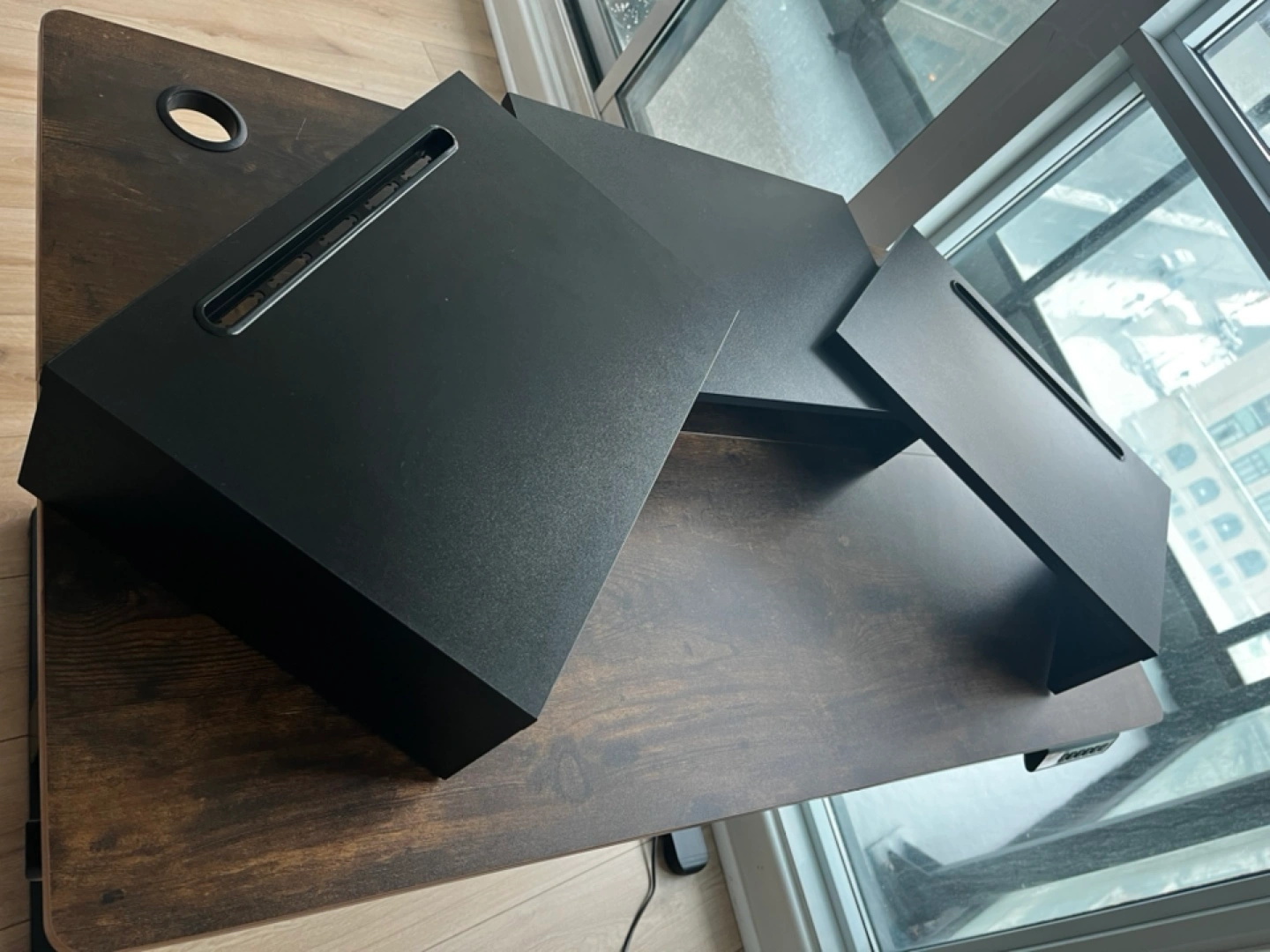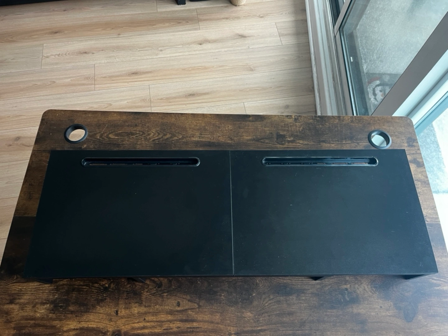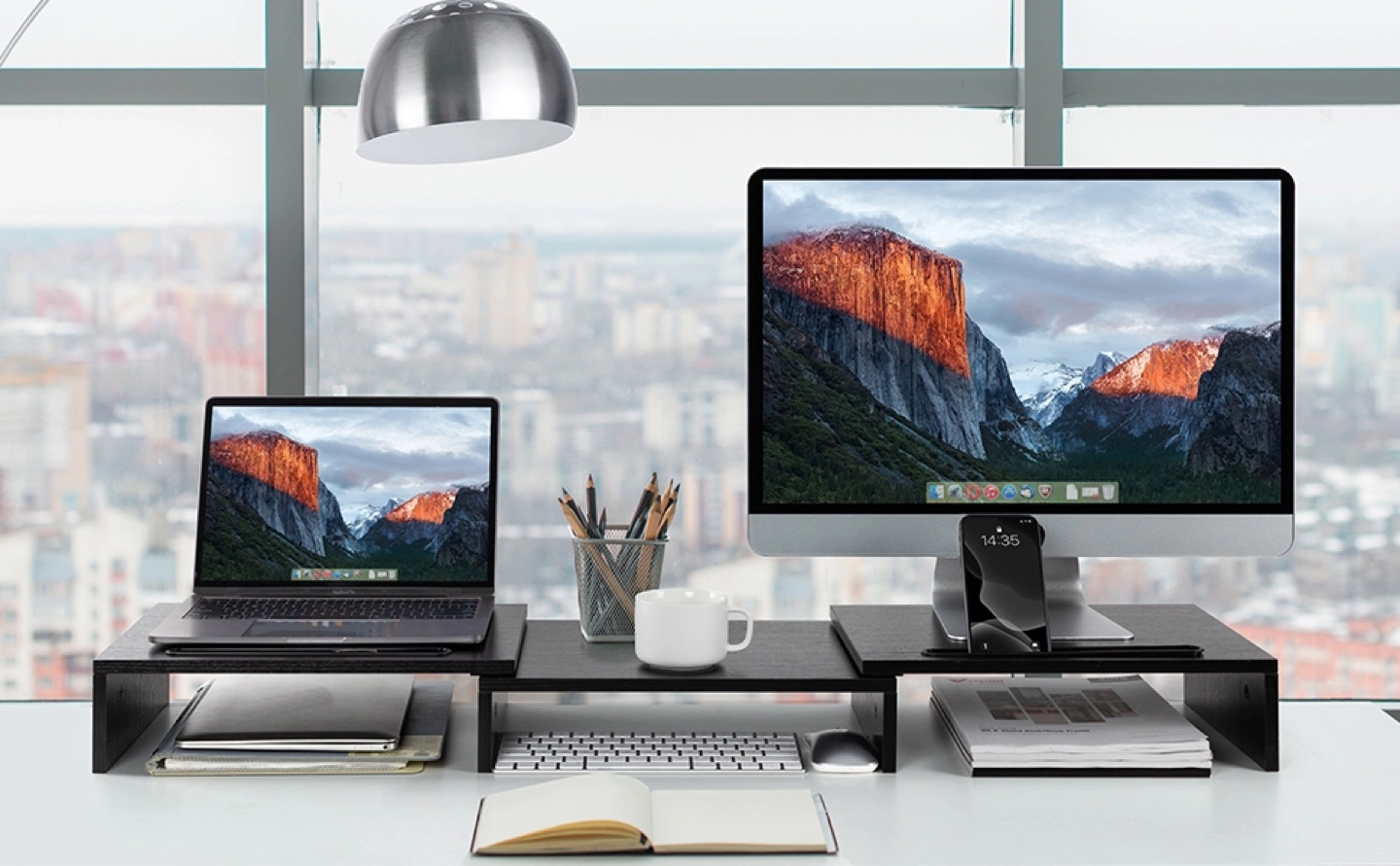 263***MOVING SALE*** As a ergonomic monitor riser stand, it could raise your computer monitor, tablet or laptop to an and keep screen at eye level, to reduce stress on shoulders and neck. This dual monitor stand has unique slots designed to hold tablets, phones. Adjust the length that you need between 29" to 43", put your monitors on stand with an ergonomic height, reduces eye strain and back pain.