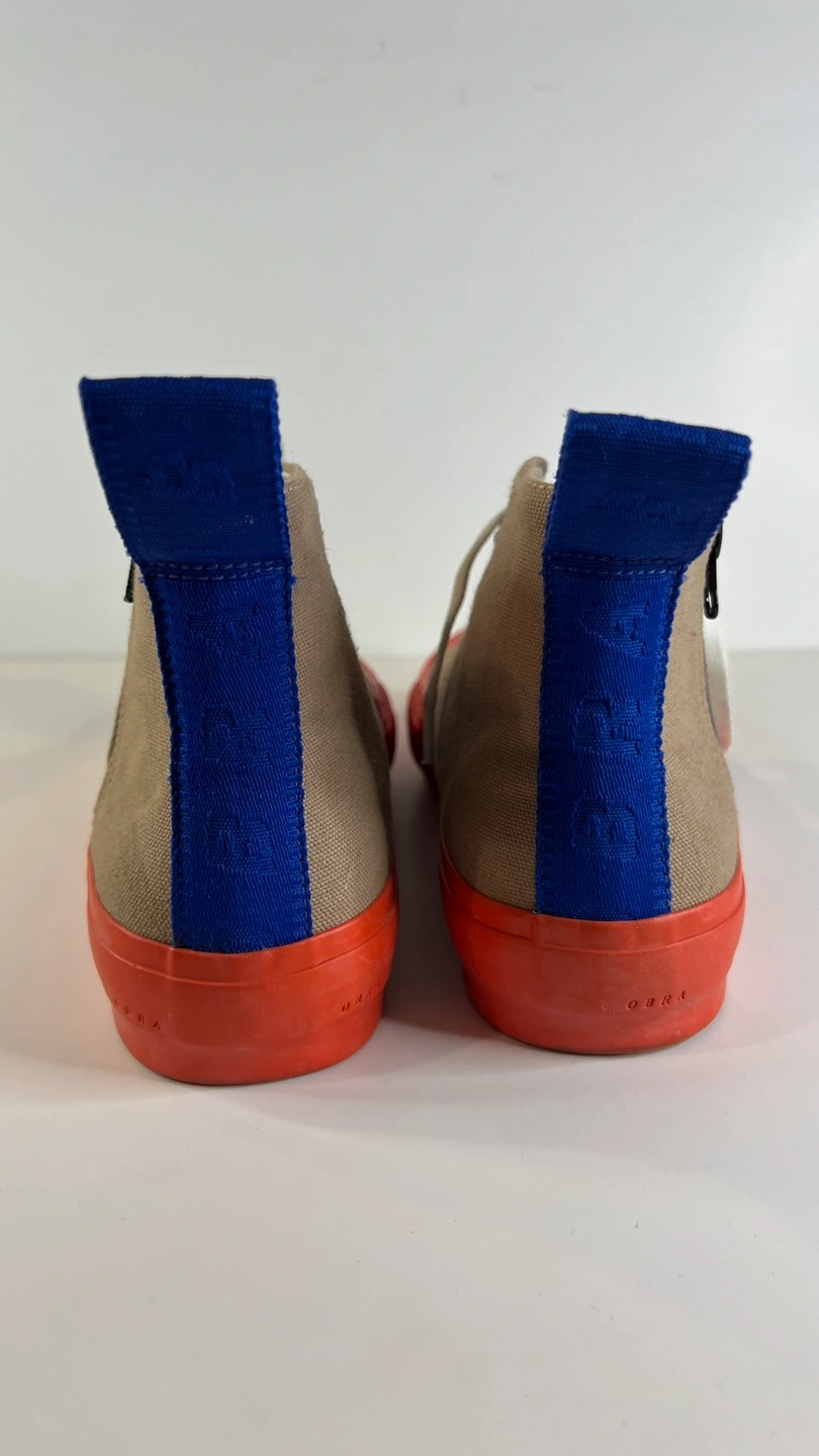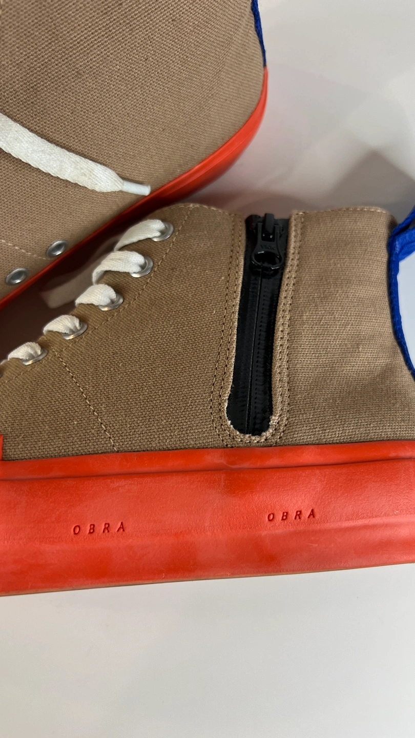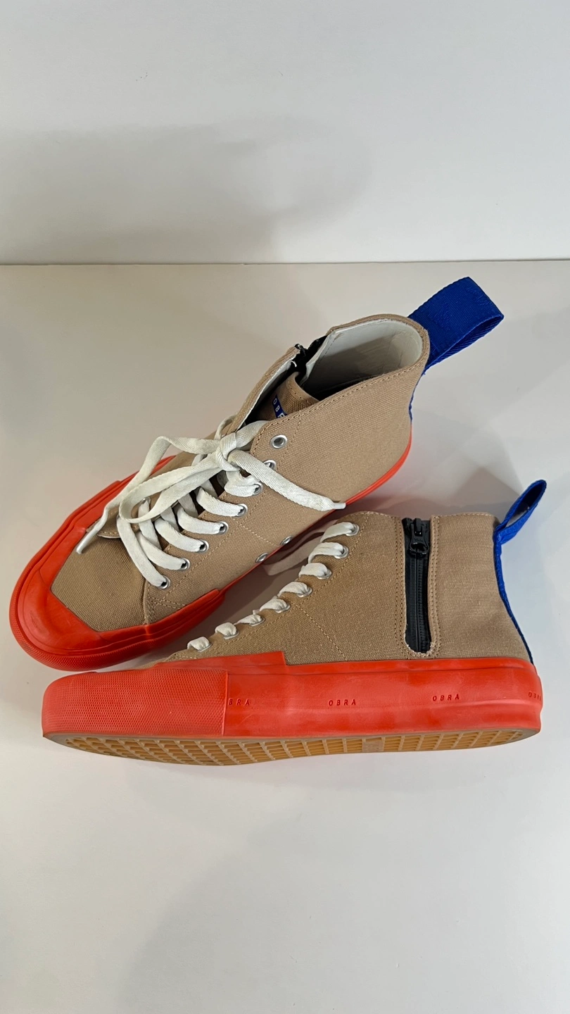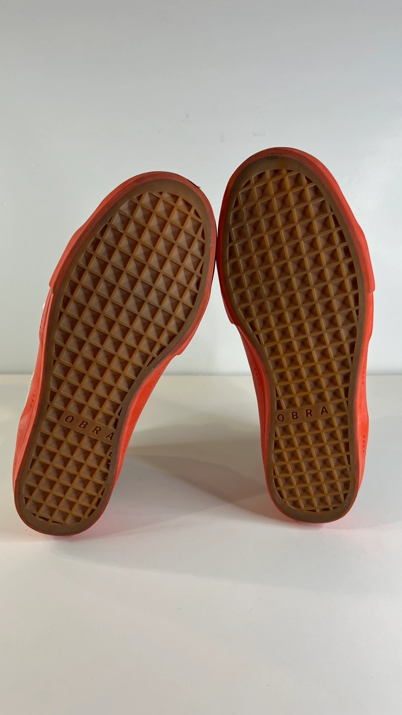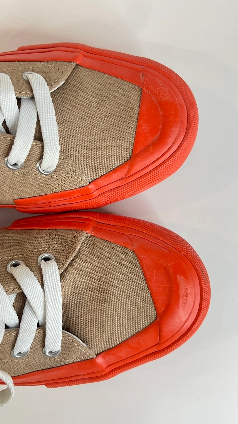This pair was used as a floor display model, and comes with minor cosmetic flaws on the tip of the orange rubber sole.