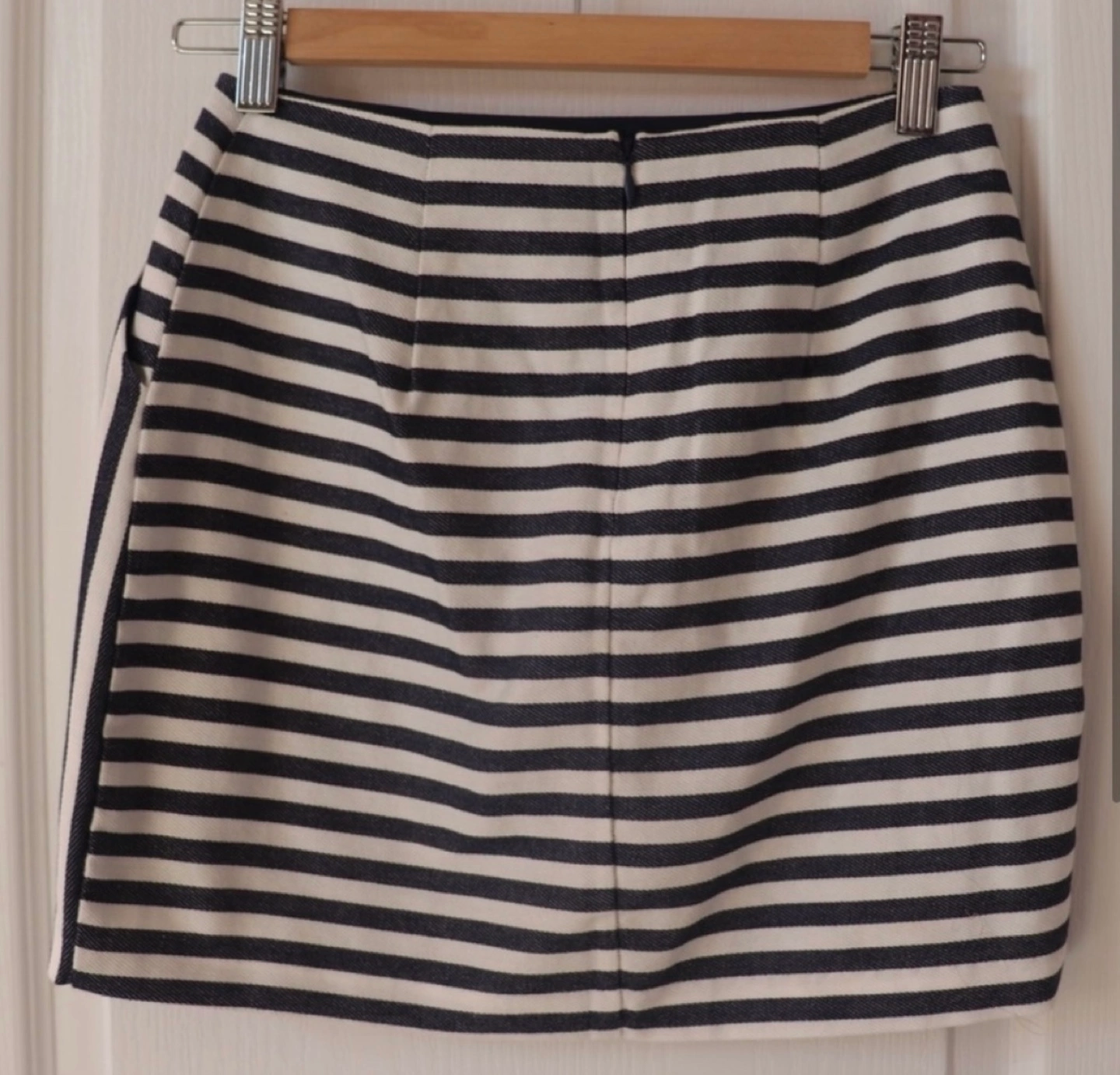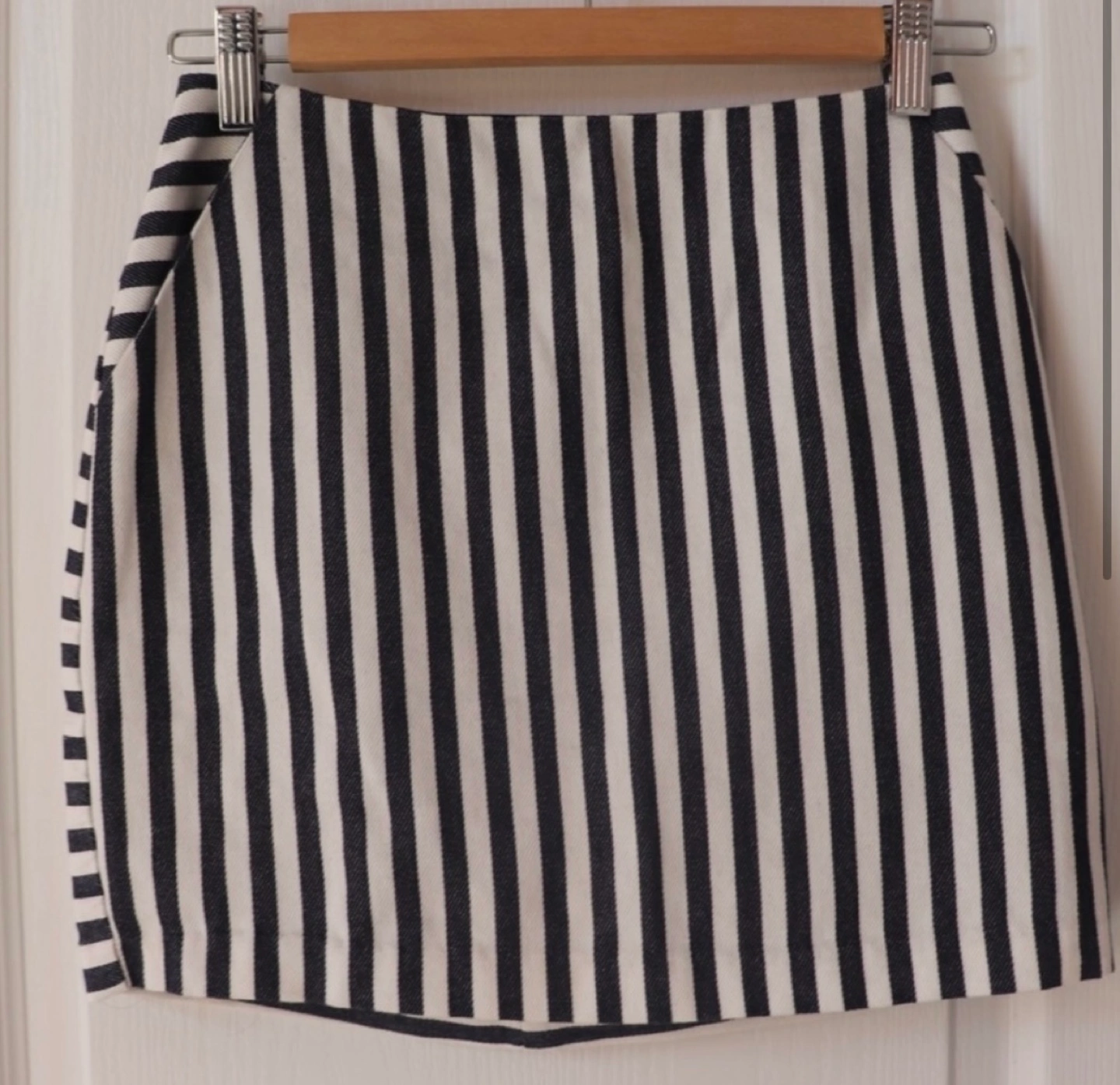Adorable mini skirt. Black and white vertical stripes. Size small. Good condition.