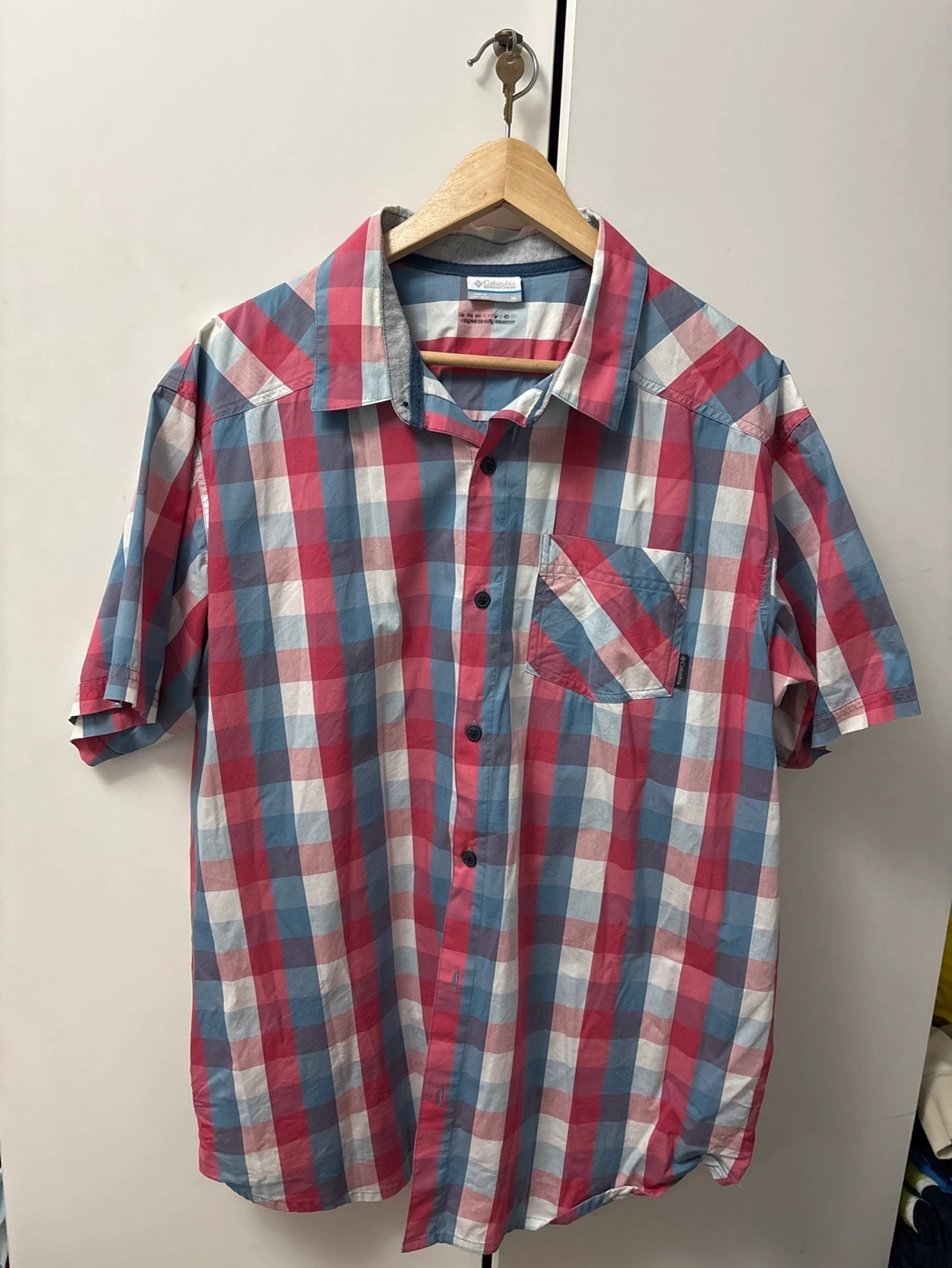548Pick up only Sorry, won’t respond to “Is this available” If the ad is up, it is available. Men's short sleeve button-up shirt. Red, blue and white plaid pattern. One chest pocket. Great for casual wear.