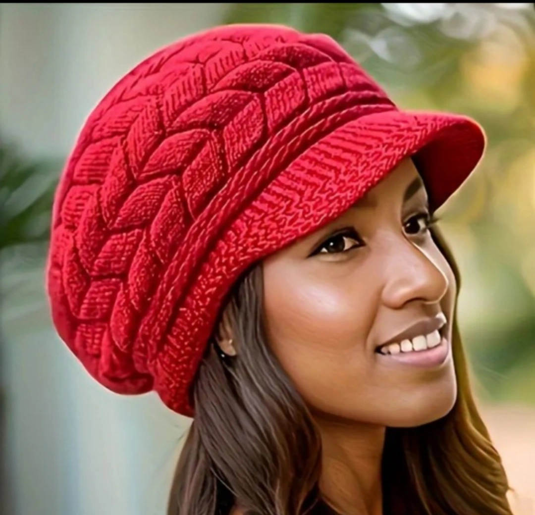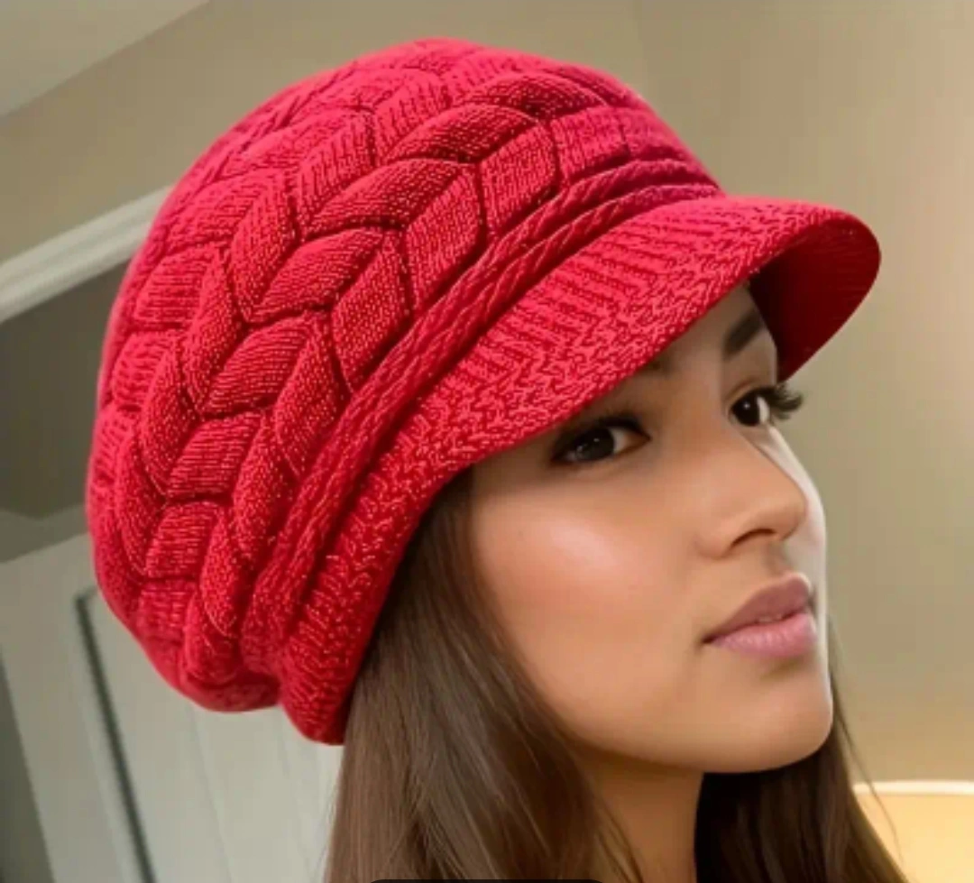 BNIB Elegant Women's winter beret Red Knit Hat with fleece