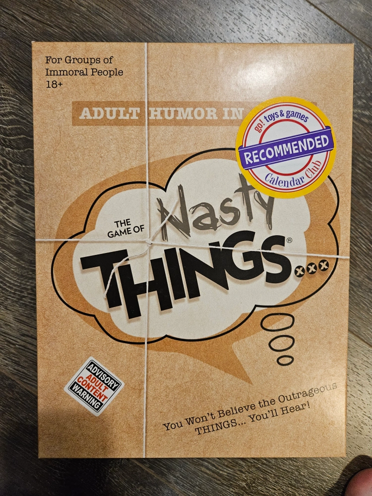 Adult party game. 250 inappropriately hilarious topics. For groups of immoral people 18+. Includes topic cards and instructions. Unopened, new in box.
