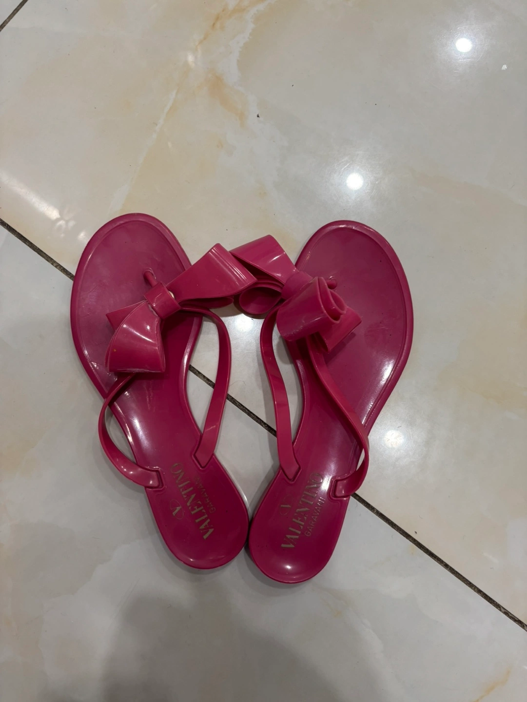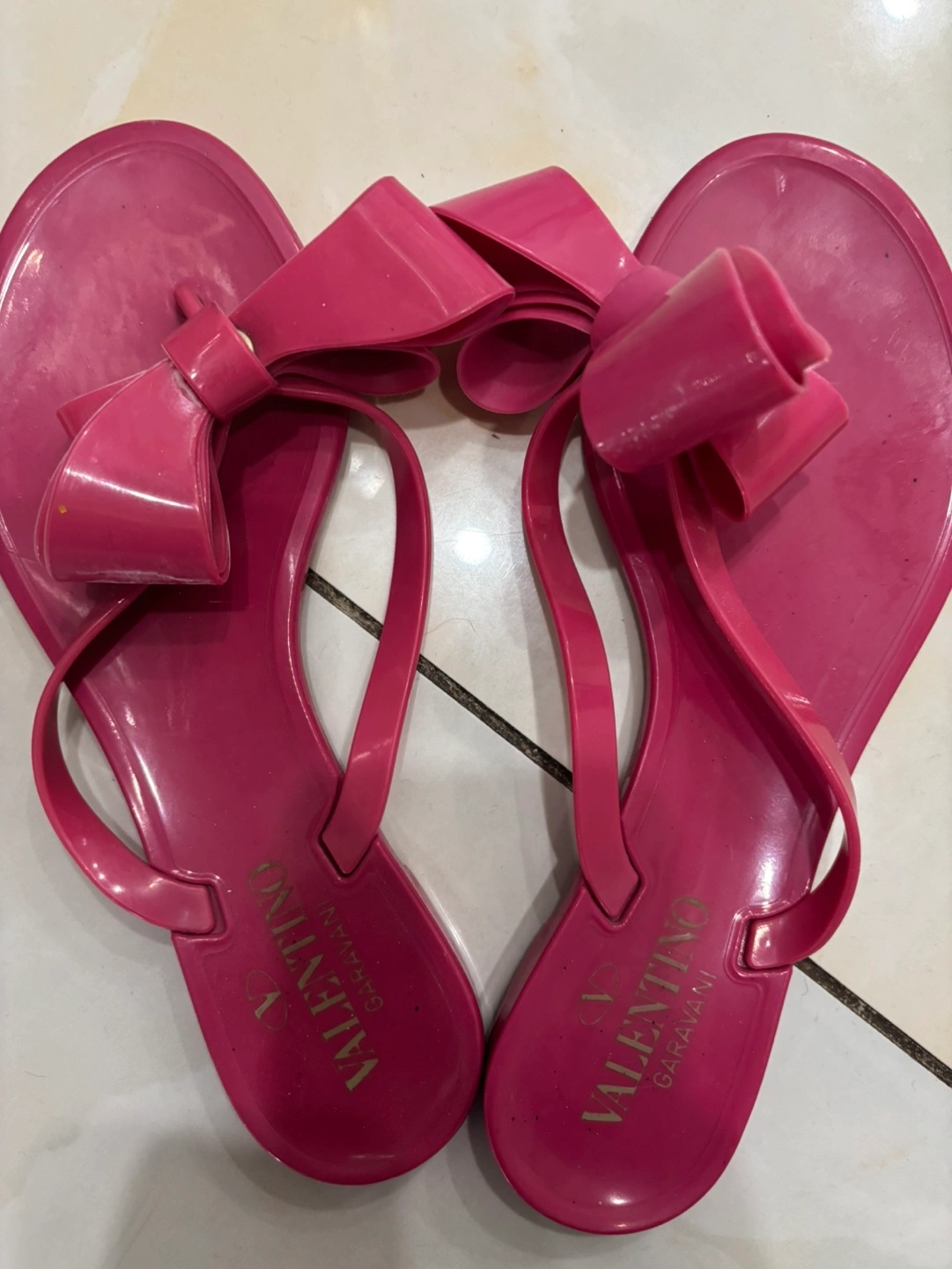 886Pink jelly flip flops. Features a large bow detail. Size 36. Pre-owned. Authentic