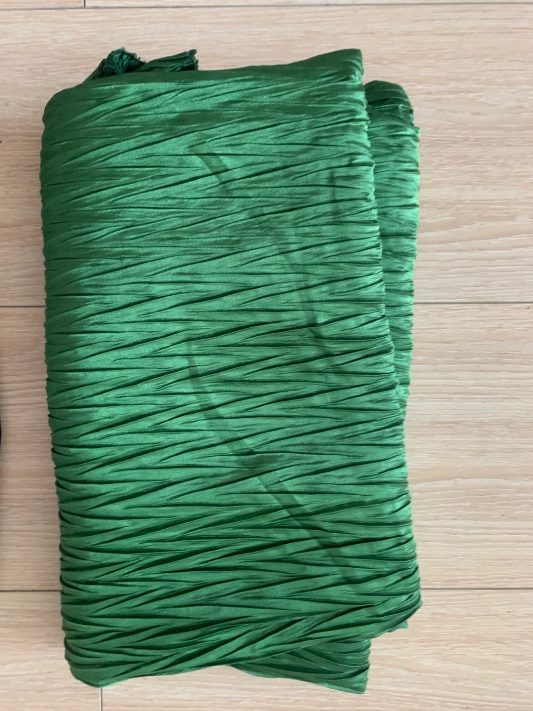 Dark green pleated fabric. Suitable for various sewing projects. Unused.