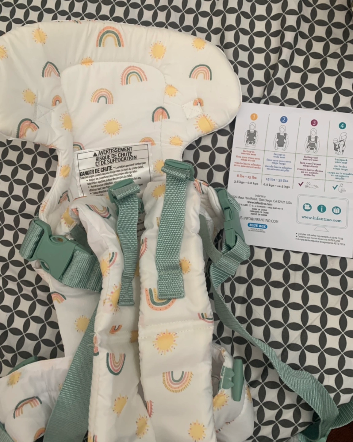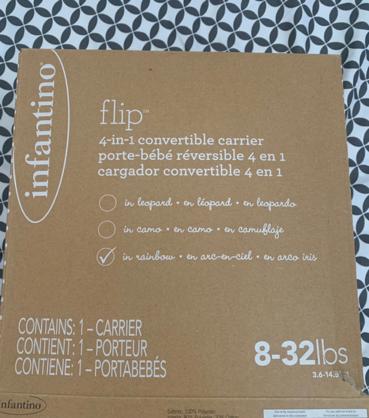 59Infantino Flip 4-in-1 convertible carrier. Rainbow pattern. Brand new conditon. Suitable for 8-32 lbs. Includes instructions.