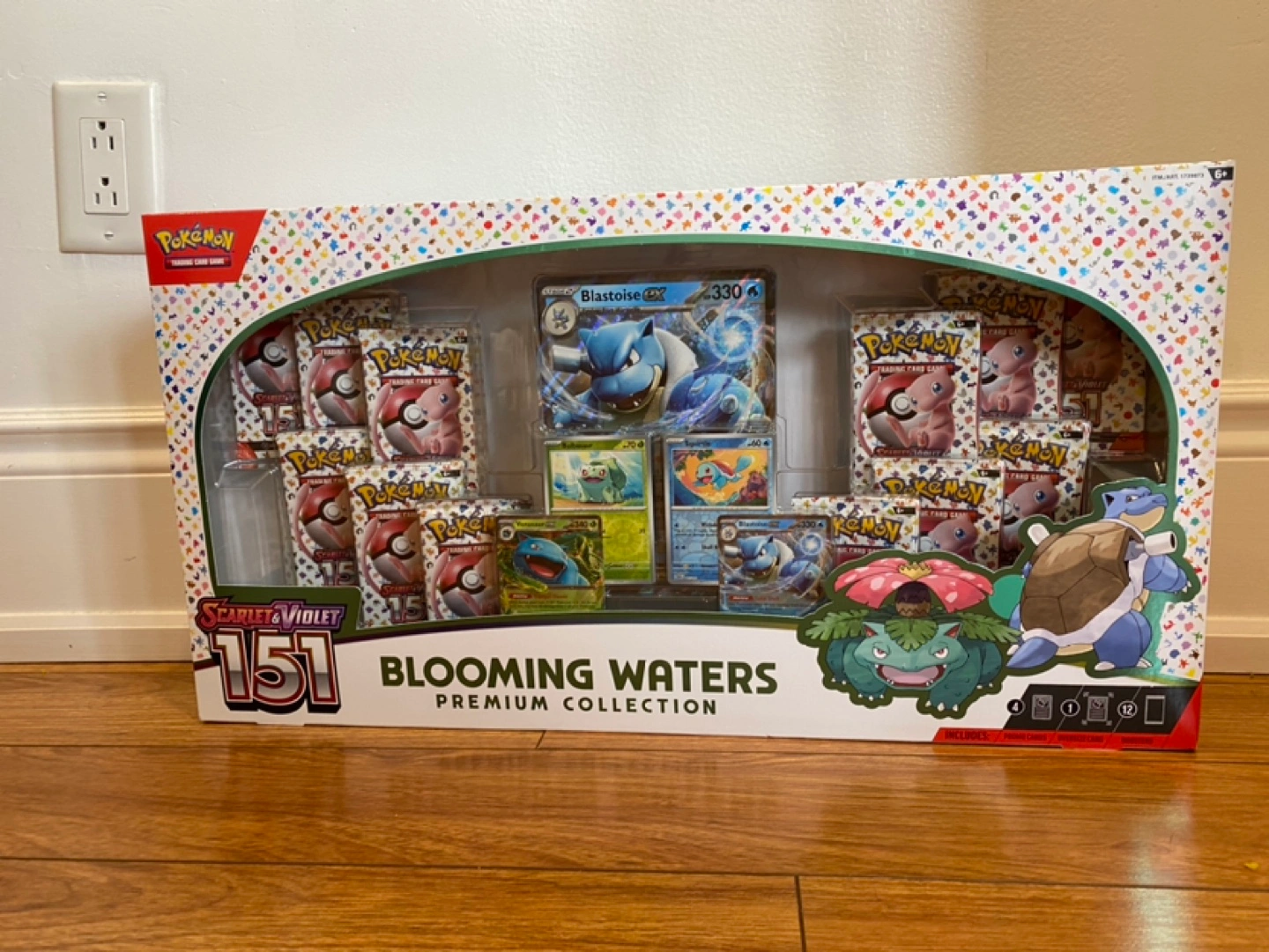 Sealed Pokemon Premium Collection. Includes booster packs, promo cards, and more. Blooming Waters theme.