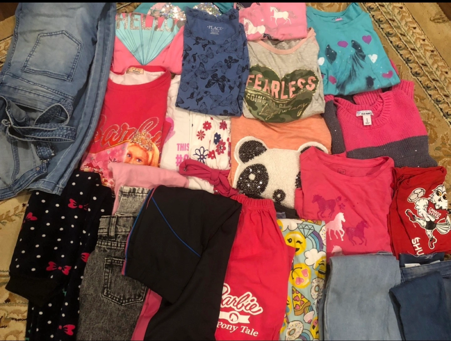 Large bundle of girls' clothing. Includes shirts, pants, jeans and leggings. Various colours and styles. Good condition. More then 20 items!
