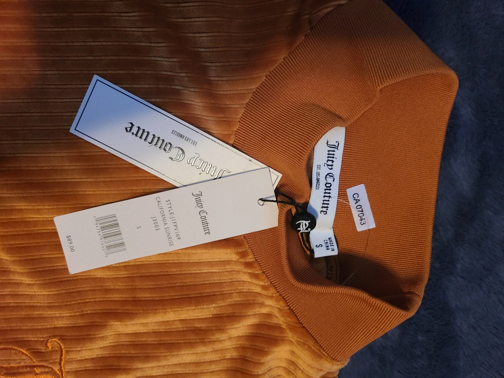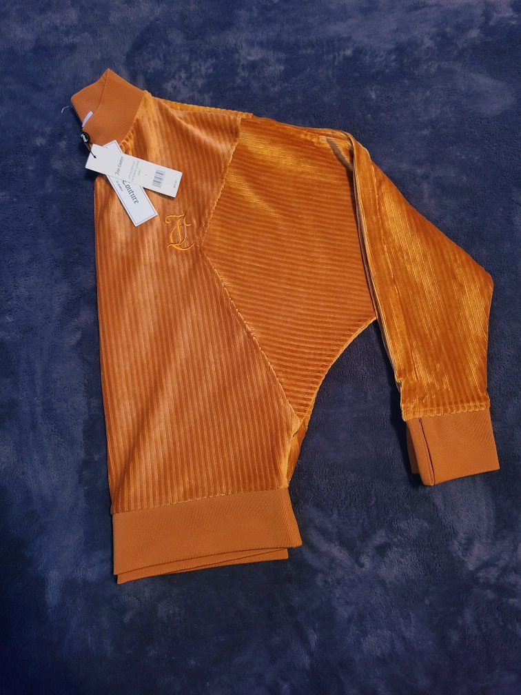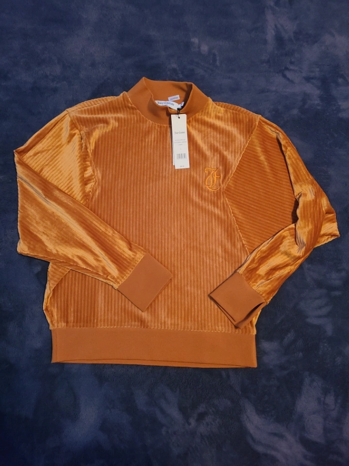 Brand new with tags, size small. Mustard yellow velour. Long sleeves, mock neck. Ribbed cuffs and hem.